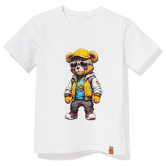 Bawełniany t-shirt, Miś w okularach, biały