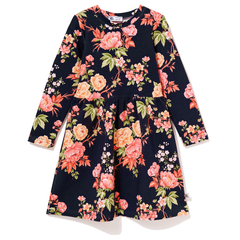 Bawełniana sukienka z krótkim rękawem Orientalne kwiaty na granacie