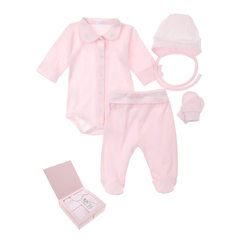 Komplet niemowlęcy z bawełny Supima 4-części Horse, różowy