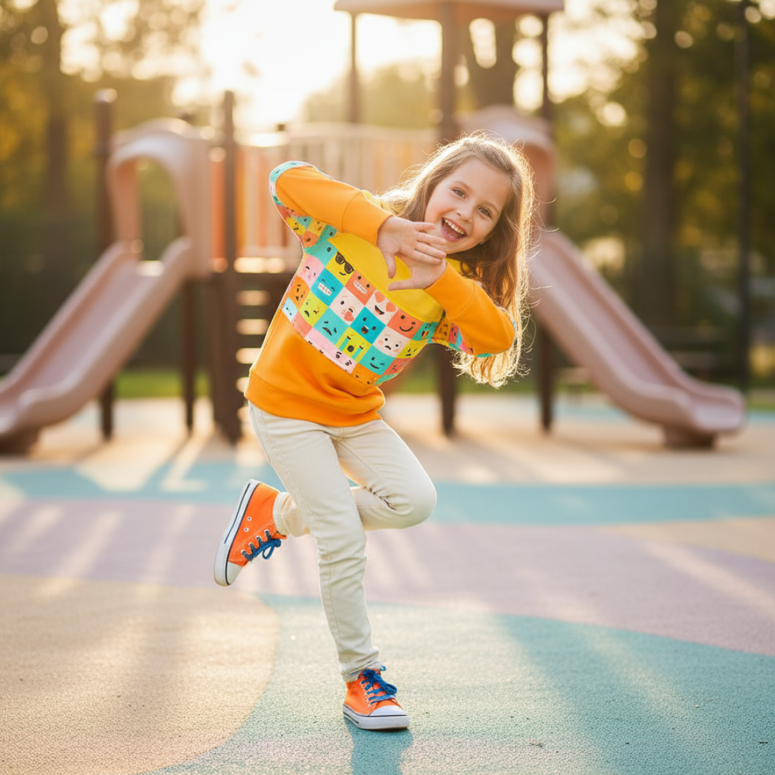 Jaki nastrój ma dzisiaj Twój maluszek? Może pokaże Ci to na tej bluzie? A może właśnie bluza Emotki sprawi, że pochmurny, poranny nastrój zmieni się w bardziej radosny? W końcu w tak słonecznych kolorach trudno być pochmurnym. Bluza uszyta z wysokiej jakości bawełny ma prosty, luźny fason z głębokim kapturem wykończonym na zakładkę. Dzięki temu bluzę łatwiej się zakłada. Miękki materiał jest niezwykle przyjemny i bardzo komfortowy. To doskonała propozycja na co dzień, kiedy maluszek nie może czuć się skrępowany niewygodnymi ubrankami.
