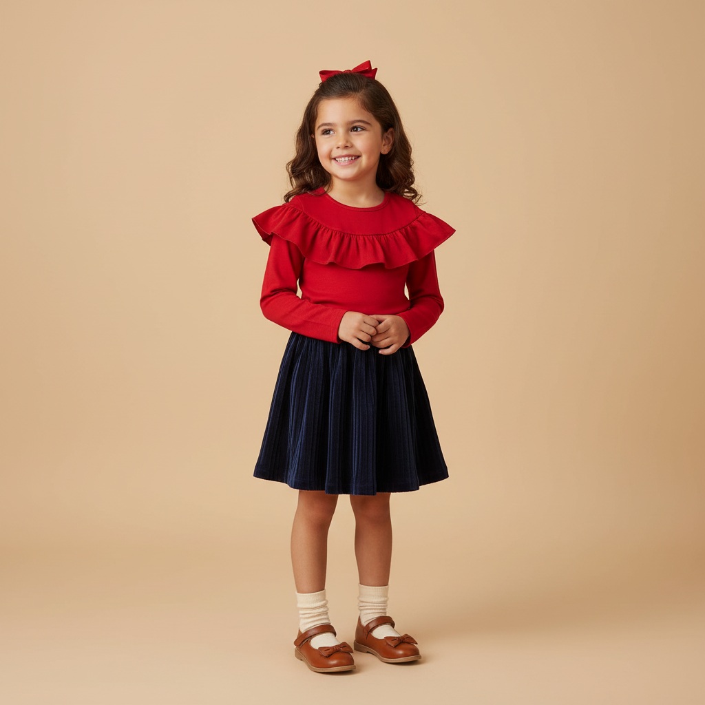 Czerwona bluzka z długim rękawem. Uszyta w Polsce, z najwyższej jakości bawełny, jest miękka, elastyczna, bardzo wygodna, a przy tym niezwykle efektowna. Wszystko za sprawą dużej, zaokrąglonej falbanki umieszczonej tuż pod dekoltem. To ona sprawia, że bluza prezentuje się tak elegancko. Jest to wspaniała propozycja zarówno do stylizacji casualowych, jak i eleganckich. Można połączyć ją z kolorowymi legginsami lub piękną, tiulową spódniczką.