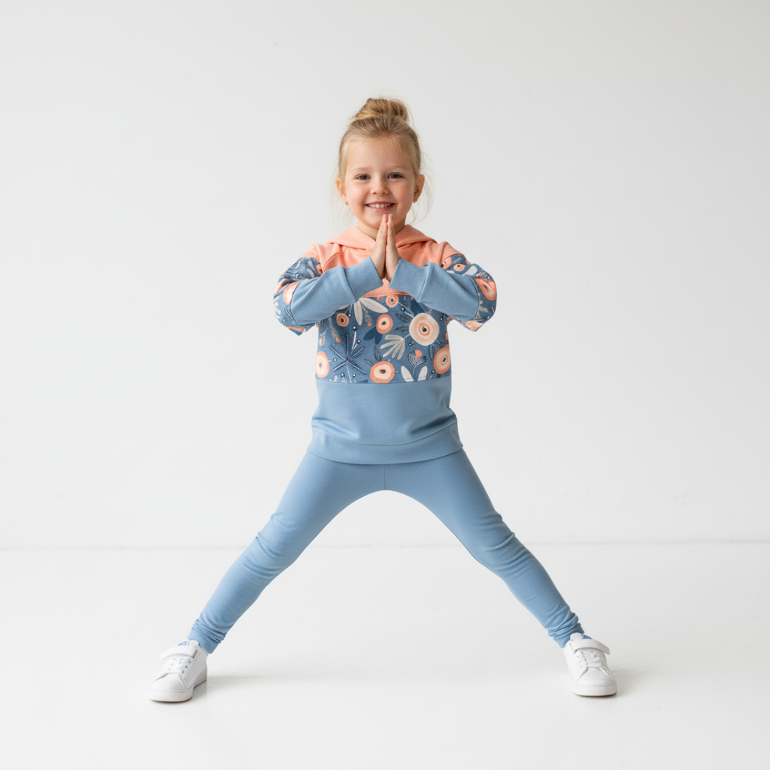 Piękna, pastelowa bluza dresowa dla dziewczynki. Uszyta w Polsce, z najwyższej jakości bawełny, jest bardzo miękka i wygodna. Dzięki niewielkiej domieszce elastanu materiał jest jeszcze bardziej elastyczny, co da się odczuć podczas noszenia. Bluza ma luźny fason i głęboki kaptur wykończony na zakładkę. Delikatne, pastelowe odcienie różu i niebieskiego doskonale wpisują się w dziewczęcą garderobę, a motyw w kwiatuszki nadaje jej bardziej subtelnego wyrazu.
