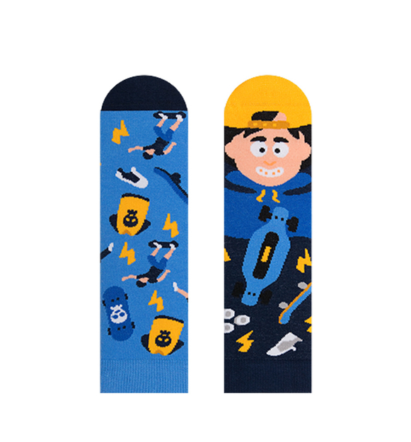 Jeśli zamiast figur geometrycznych Twój maluch wymienia kolejne figury, które wykonał na deskorolce, a jego ulubionym miejscem jest rampa w skateparku, to te skarpetki są właśnie dla niego. Kto wie, może nasza skarpetkowa gwiazda Ollie McFly też nauczy się jakiegoś nowego triku? Może widok z dziecięcych stópek nie jest najlepszy, ale za to wrażenia gwarantowane. Bawełniane skarpetki są elastyczne i bardzo mięciutkie, więc na pewno sprawdzą się podczas tych wszystkich aktywności.