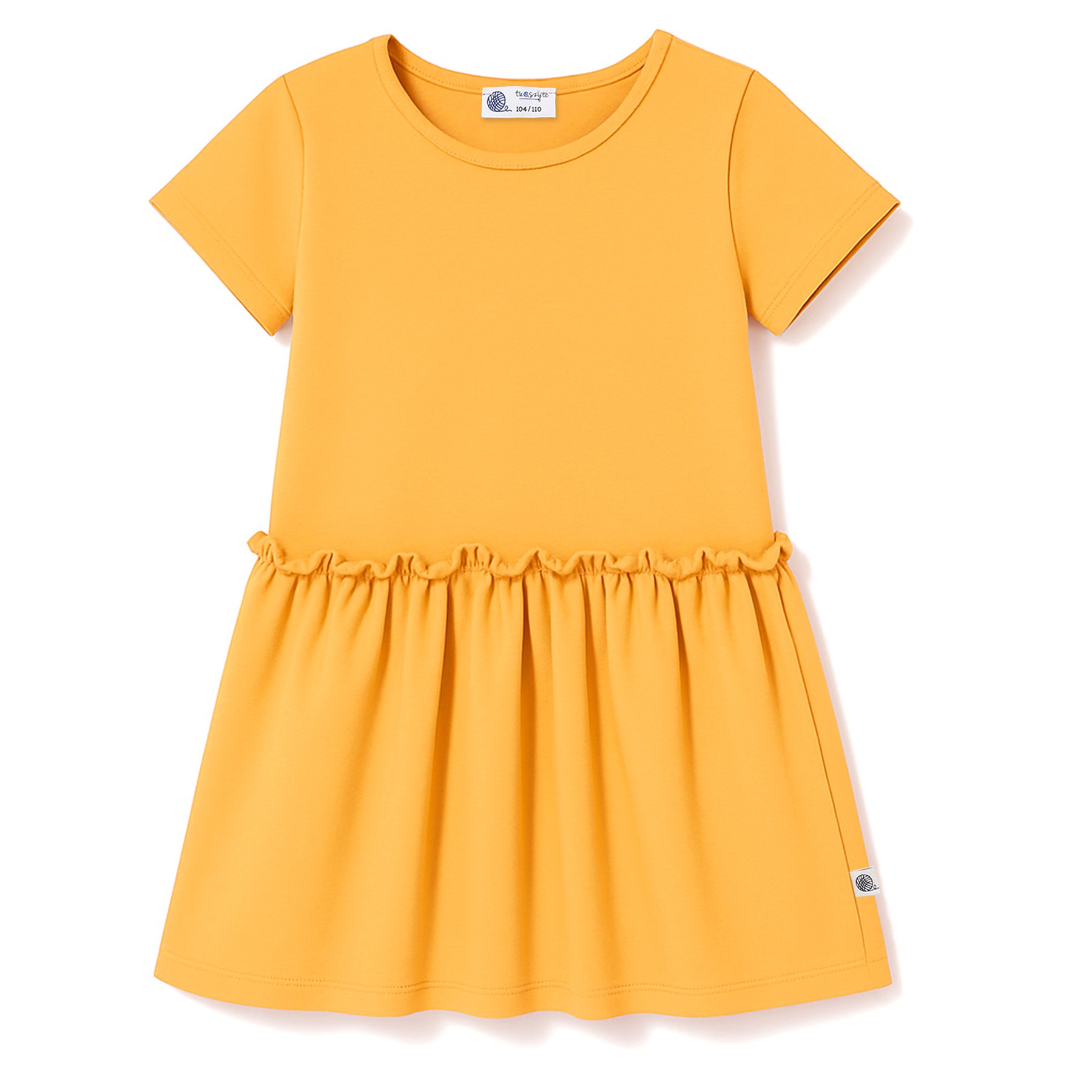 Żółta, letnia sukienka z krótkim rękawkiem. Uszyta w Polsce, z najwyższej jakości bawełny, jest bardzo miękka, przewiewna i elastyczna. Wspaniale sprawdza się w ciepłe, letnie dni, kiedy komfort dziecka jest bardzo ważny. Sukienka ma okrągły dekolt, jest dopasowana na górze. Dolna, rozkloszowana część została naszyta na zewnątrz, co prezentuje się bardzo efektownie i oryginalnie. Sukienka z naturalnej bawełny to propozycja nie tylko stylowa, ale też bardzo praktyczna. Wybór dobrych jakościowo produktów to przede wszystkim gwarancja termicznego komfortu dziecka, co jest niezwykle istotne podczas upałów.
