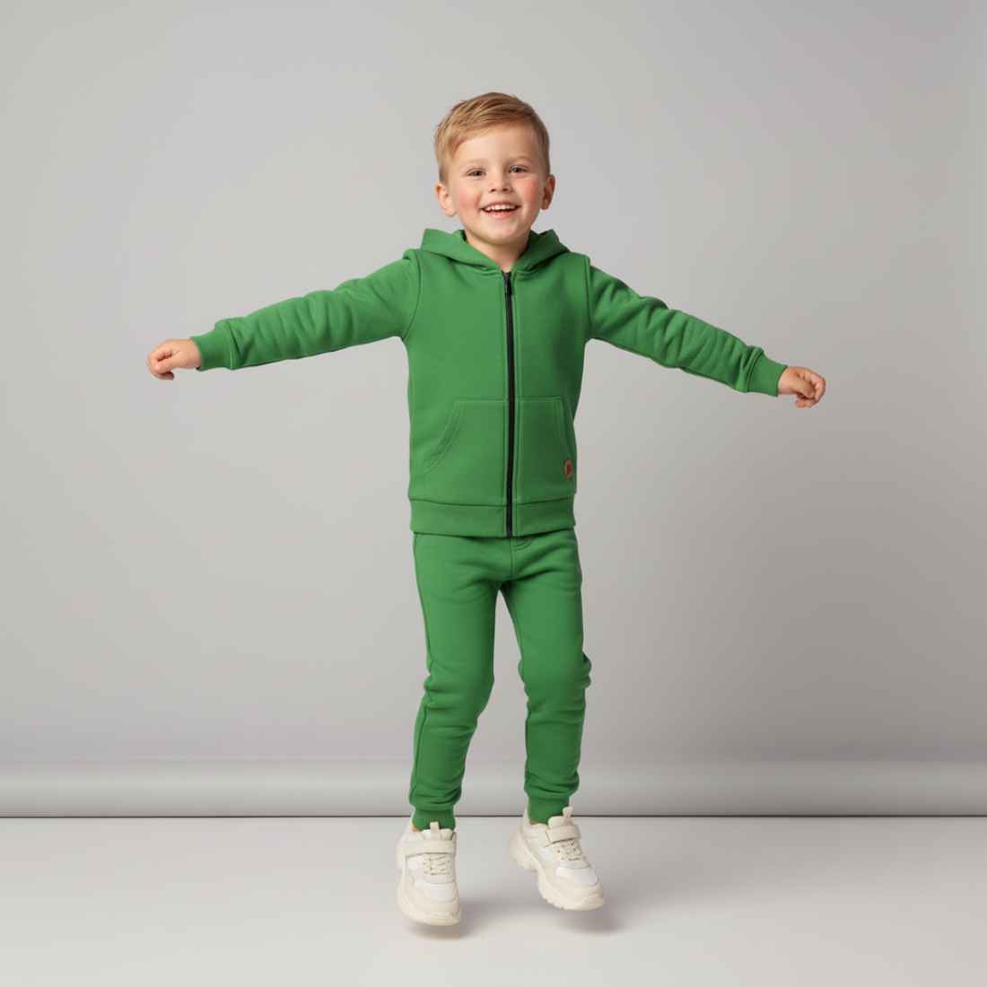 Bawełniana bluza dresowa z kapturem. Uszyta w Polsce, z dbałością o każdy detal, jest bardzo miękka, wygodna i elastyczna. Jej prosty fason sprawdza się znakomicie w codziennym użytkowaniu, kiedy dziecko potrzebuje przede wszystkim swobody i pełnego komfortu noszenia. Bluza ma głęboki kaptur, praktyczne zapięcie na suwak i wykończenia z elastycznych ściągaczy. To dzięki nim jej kształt zostaje zachowany na długo, nawet przy częstym noszeniu. Zielona bluza dresowa doda chłopięcej garderobie nieco koloru. Dobry duet stworzy z granatowymi spodniami dresowymi lub klasycznymi dżinsami.