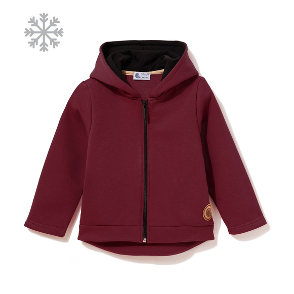Bordowa, ocieplana bluza dresowa z kapturem. Uszyta w Polsce, z najwyższej jakości bawełny, jest niezwykle miękka, delikatna i bardzo wygodna. Bluza jest zapinana na wygodny suwak, ma głęboki kaptur i delikatnie wydłużony tył, dzięki czemu jeszcze lepiej chroni dziecko przed chłodem. Ta ocieplana bluza to must have podczas ferii zimowych i popołudniowego wypadu na sanki. W sezonach przejściowych może być ciekawym i bardzo wygodnym zamiennikiem cienkiej kurtki. W zestawie ze spodniami dresowymi zapewni dziecku wygodę na najwyższym poziomie.