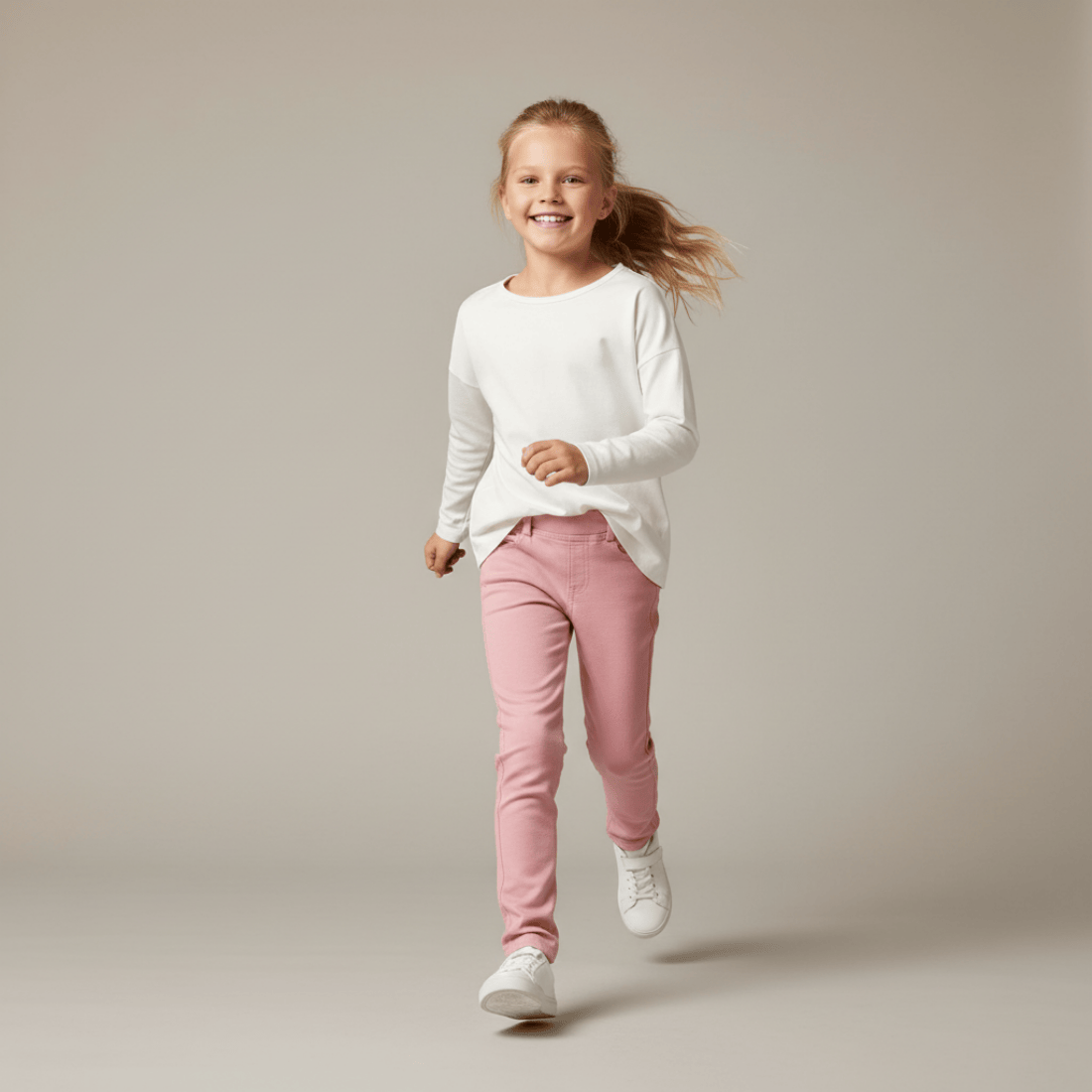 Różowe jegginsy dziewczęce uszyte w polskiej szwalni, z najwyższej jakości bawełny. Są miękkie, elastyczne i bardzo wygodne. Spodnie mają gumkę w pasie, imitacje kieszonek z przodu i dwie kieszenie z tyłu. Wąskie nogawki dobrze dopasowują się do dziewczęcej sylwetki i nie krępują ruchów podczas noszenia. Jegginsy to połączenie ciekawego stylu i wygody na najwyższym poziomie, właśnie dlatego są tak często wybierane do codziennych stylizacji. Pasują zarówno do stroju sportowego, jak i eleganckiego, wystarczy tylko dobrać do nich odpowiednie dodatki.