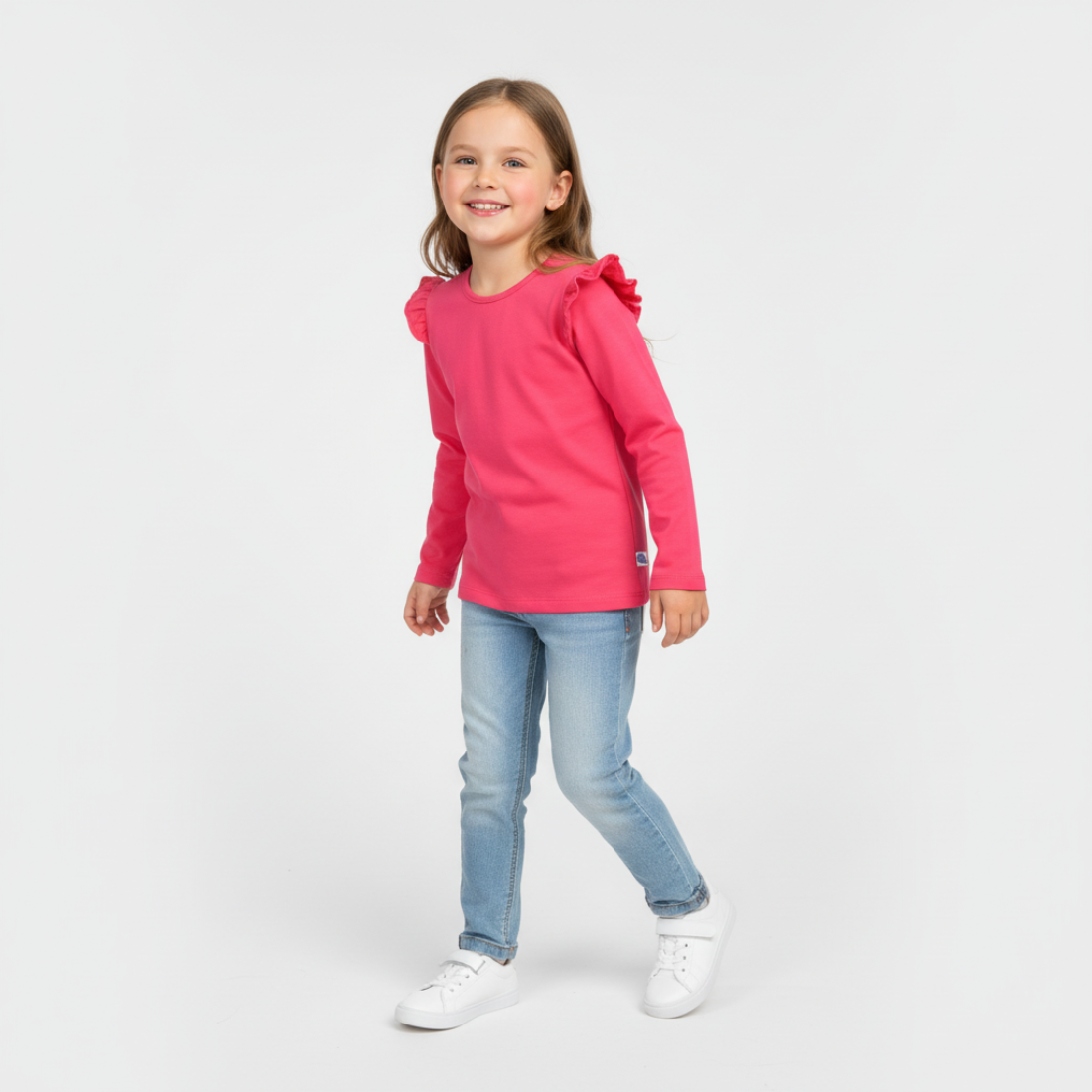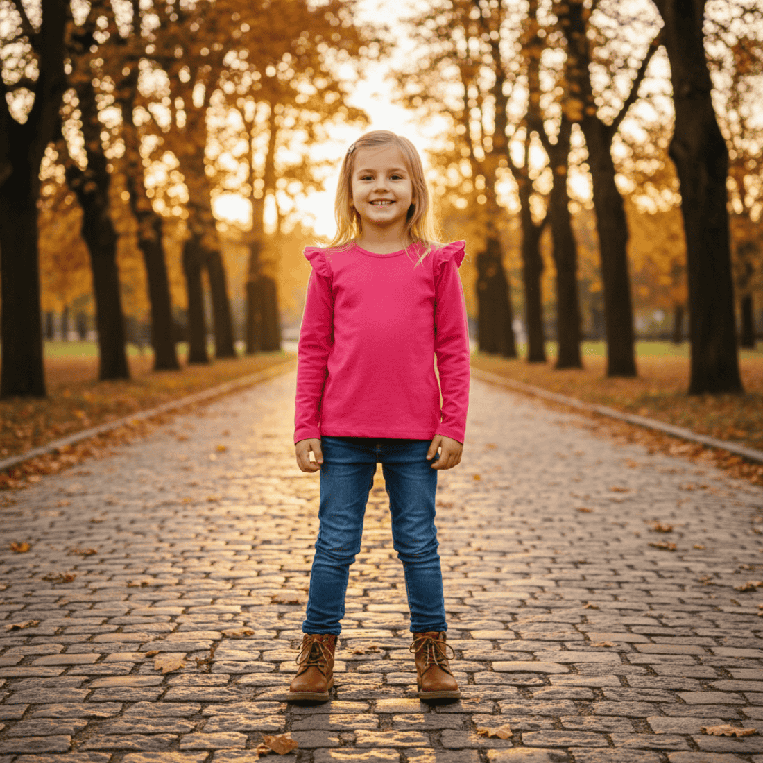 Prosta bluzka dziewczęca z długim rękawem. Uszyta w Polsce, z najwyższej jakości bawełny, jest mięciutka, bardzo wygodna i elastyczna. Bluzka ma okrągły dekolt i dekoracyjne falbanki na ramionach. Jej ciekawy, koralowy odcień ożywi każdą stylizację i nada jej wiosennego, radosnego charakteru. Jednolita, bawełniana bluzka doskonale sprawdza się w wielu sytuacjach i stylizacjach. Można połączyć ją z codziennymi dżinsami, prostymi spodniami materiałowymi, a także elegancką spódnicą. My polecamy dołączyć do niej jedną z naszych efektownych spódnic tiulowych.