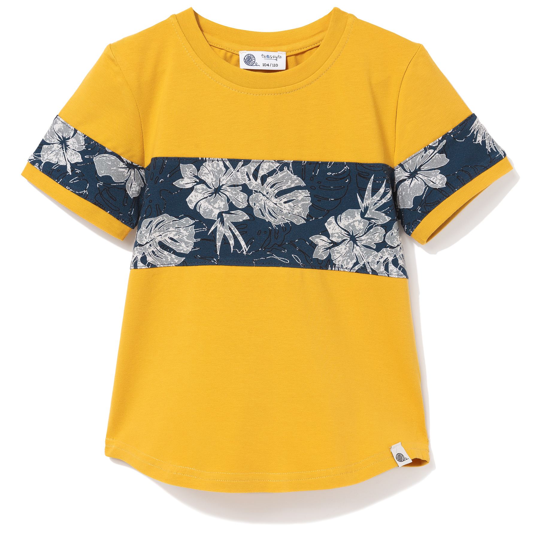 Żółty t-shirt chłopięcy idealny do letnich stylizacji. Uszyty w Polsce, z najwyższej jakości bawełny, jest przyjemny w dotyku, elastyczny i przewiewny. Wybór naturalnego, higroskopijnego materiału to najlepsza opcja na lato, kiedy dziecko mnóstwo czasu spędza na zabawie w słońcu.
