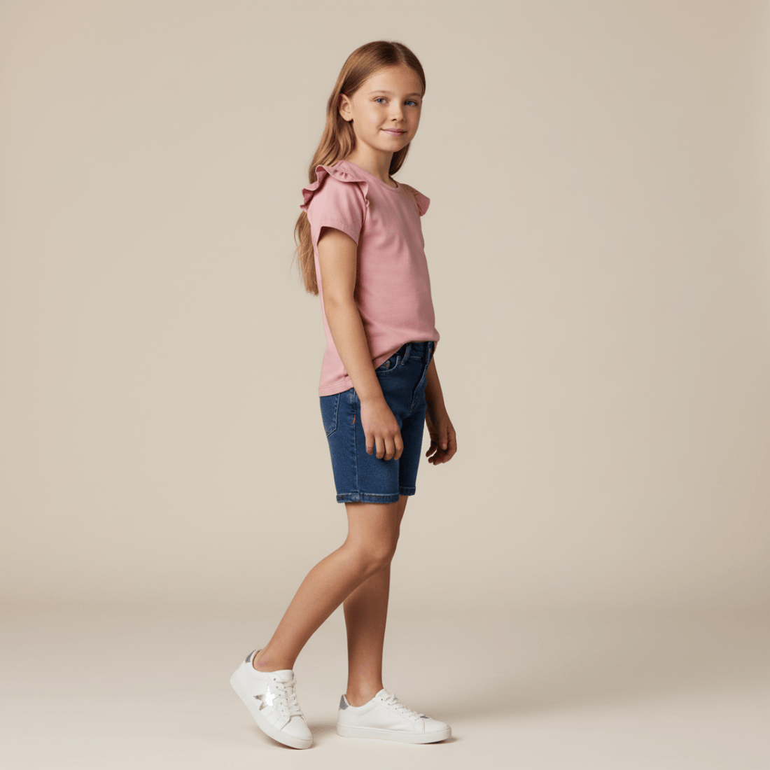 Bawełniana bluzka dziewczęca z krótkim rękawkiem. Uszyta w polskiej szwalni, z wyjątkową dbałością o szczegóły, zachwyca swoim precyzyjnym wykonaniem oraz ciekawym designem.