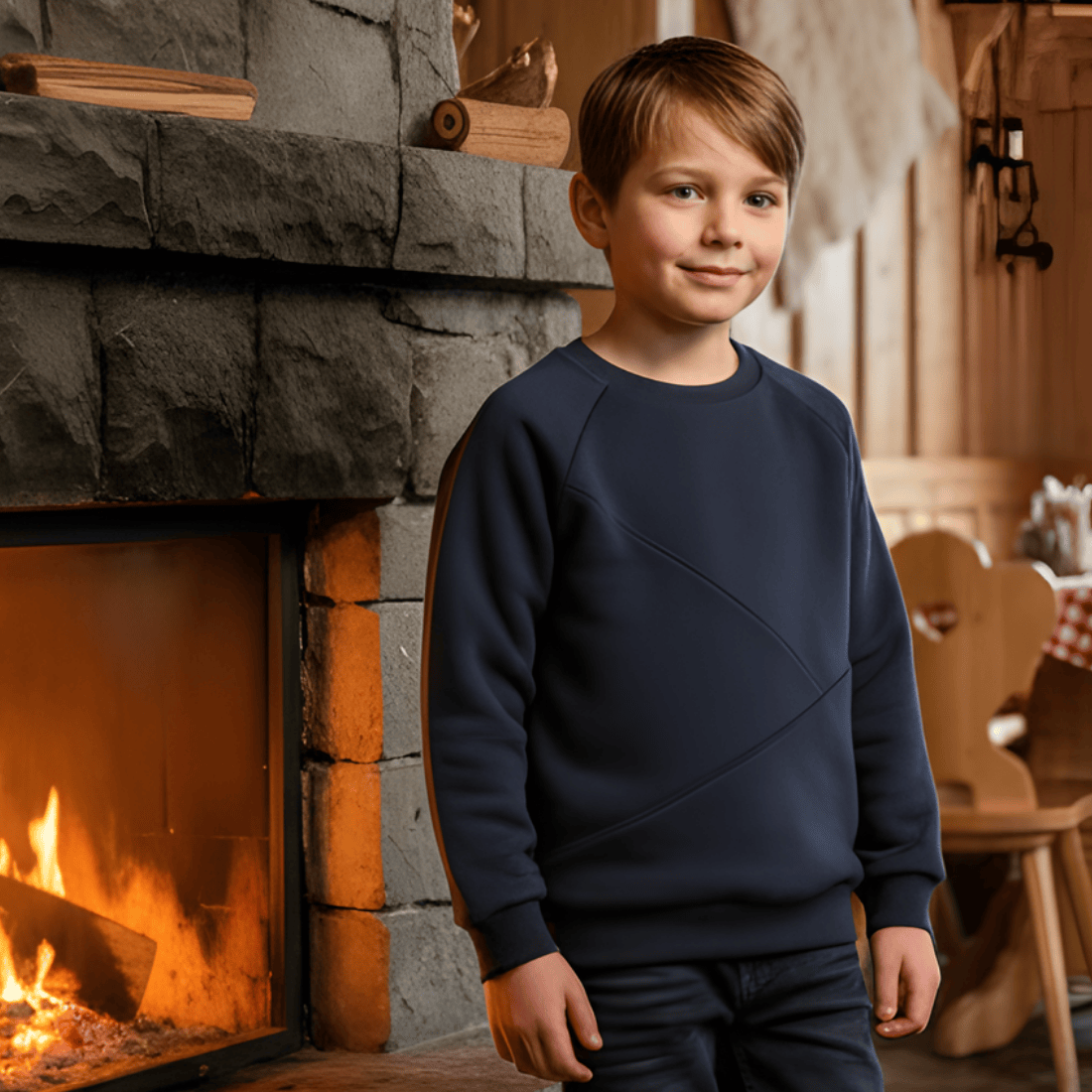 Okrągły dekolt sprawia, że bluza jest bardzo uniwersalna i łatwa do stylizowania. Granatowy kolor to ponadczasowa baza — idealna do szkoły, przedszkola, na spacer czy codzienne wyjścia.