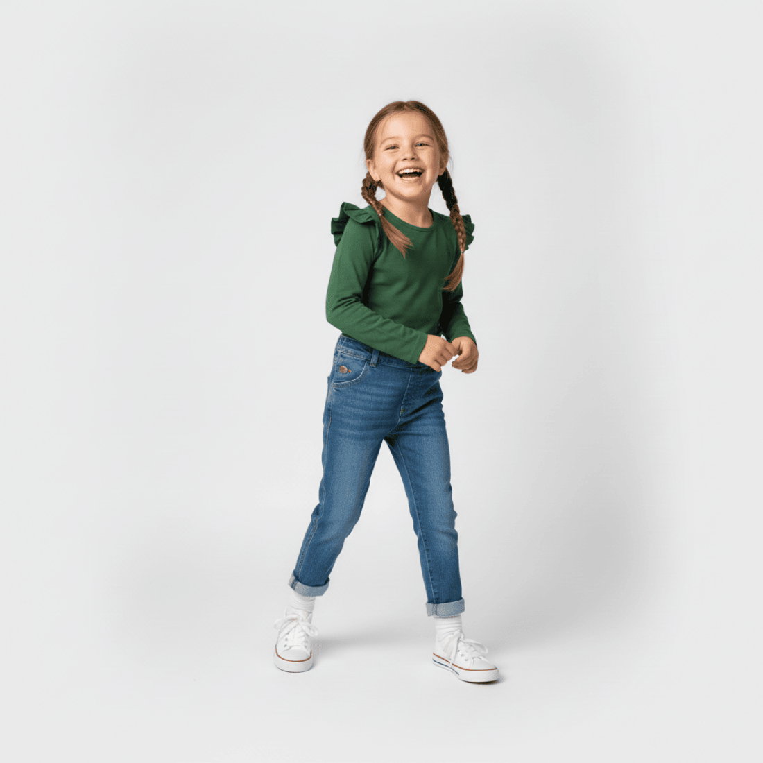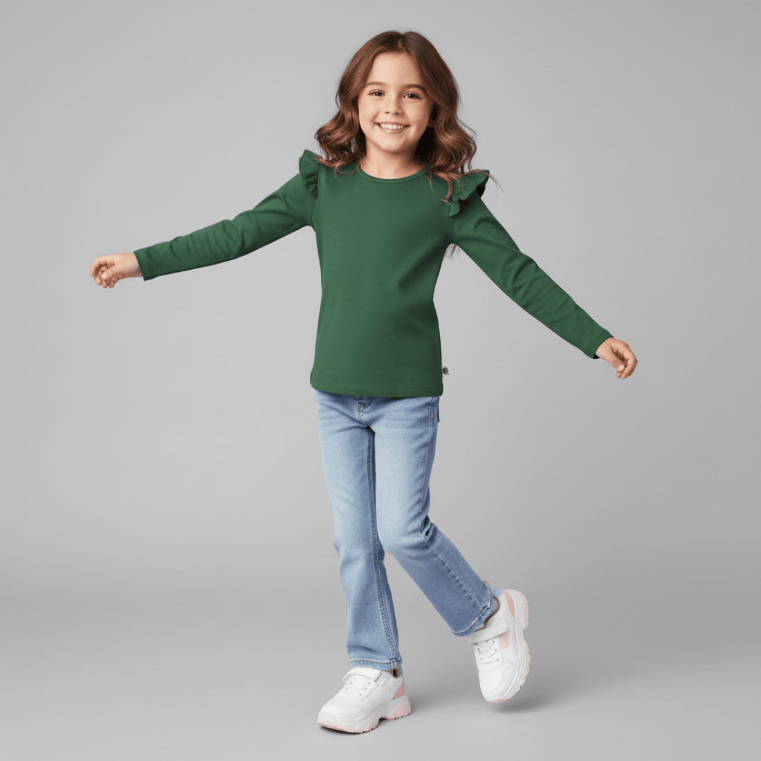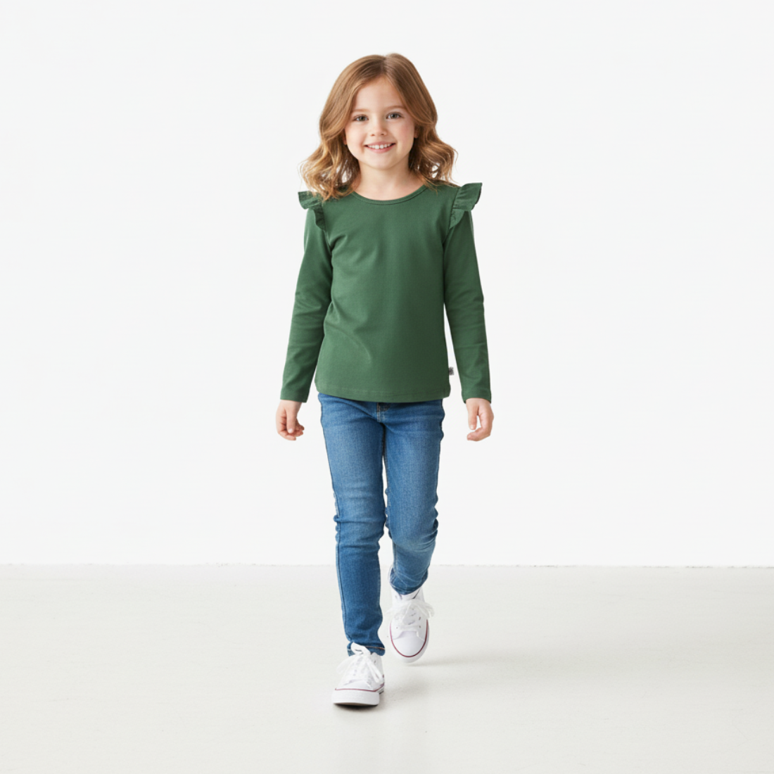 Delikatna, dziewczęca bluzka z długim rękawem. Uszyta w Polsce, z wysokiej jakości bawełny, jest bardzo wygodna, elastyczna i przewiewna, co zostanie docenione w codziennym użytkowaniu. Bluzka ma prosty fason z okrągłym dekoltem. Jej ramiona zostały ozdobione delikatnymi falbankami, które sprawiają, że ubranie prezentuje się jeszcze bardziej stylowo i elegancko. Ta z pozoru prosta bluzka jest bardzo gustowna i ciekawa. Jej subtelny, styl wpisuje się doskonale nie tylko w stylizacje codzienne, ale też te bardziej odświętne. W zestawieniu z tiulową spódnicą będzie wyglądała oszałamiająco i sprawdzi się idealnie na urodzinowym przyjęciu czy innej rodzinnej uroczystości.