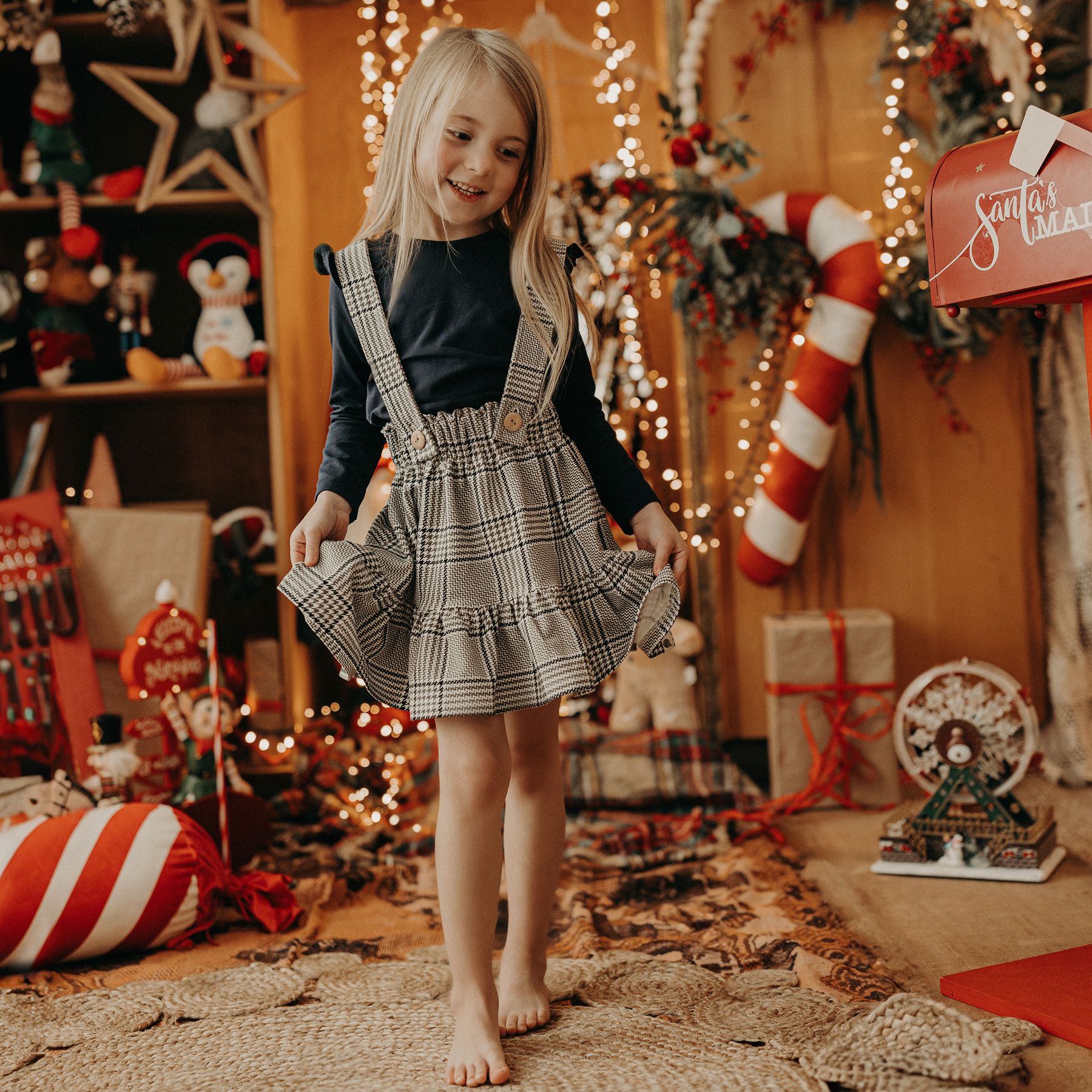 Spódnica w delikatnym, uniwersalnym, szarym kolorze została ozdobiona ponadczasowym wzorem w kraciastą pepitkę, która nadaje spódnicy elegancji i szlachetności. Jest to strój, który dobrze sprawdzi się podczas oficjalnych, rodzinnych uroczystości, świąt, a także ważnych wydarzeń w szkole czy w przedszkolu.