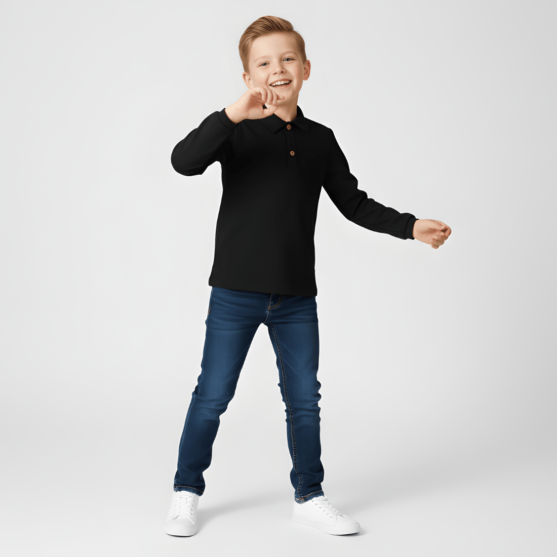 Chłopięca bluza polo z długim rękawem. Uszyta w Polsce, z wysokiej jakości bawełny, jest wygodna, elastyczna, przewiewna, ale też bardzo stylowa i gustowna.