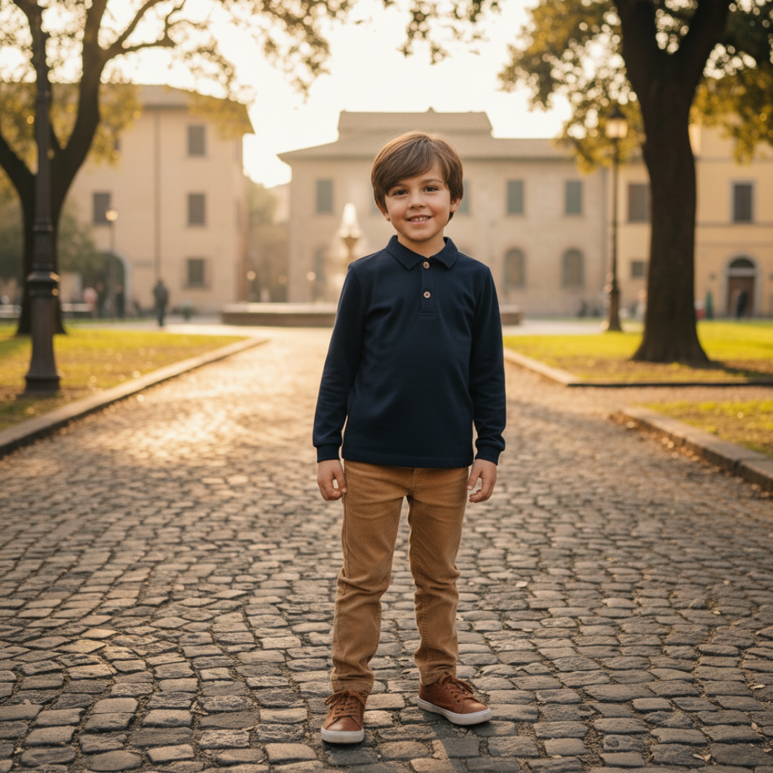 Granatowa bluzka polo dla chłopca. Uszyta w Polsce, z najwyższej jakości bawełny, jest wygodna, elastyczna, a przy tym niezwykle stylowa i uniwersalna. Pasuje zarówno do stylizacji codziennych, jak i eleganckich.