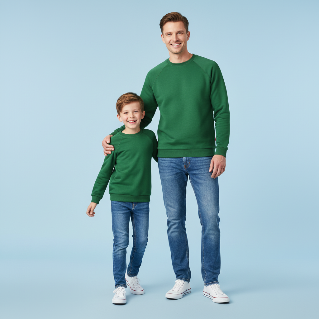 Zestaw bawełnianych bluz dresowych dla taty i syna. Bluzy uszyte w Polsce, z dbałością o każdy detal. Zarówno bluza męska, jak i chłopięca to prosty fason zapewniający wygodę na najwyższym poziomie. Taki zestaw bluz tata-syn to stylizacyjna propozycja na wiele okazji.