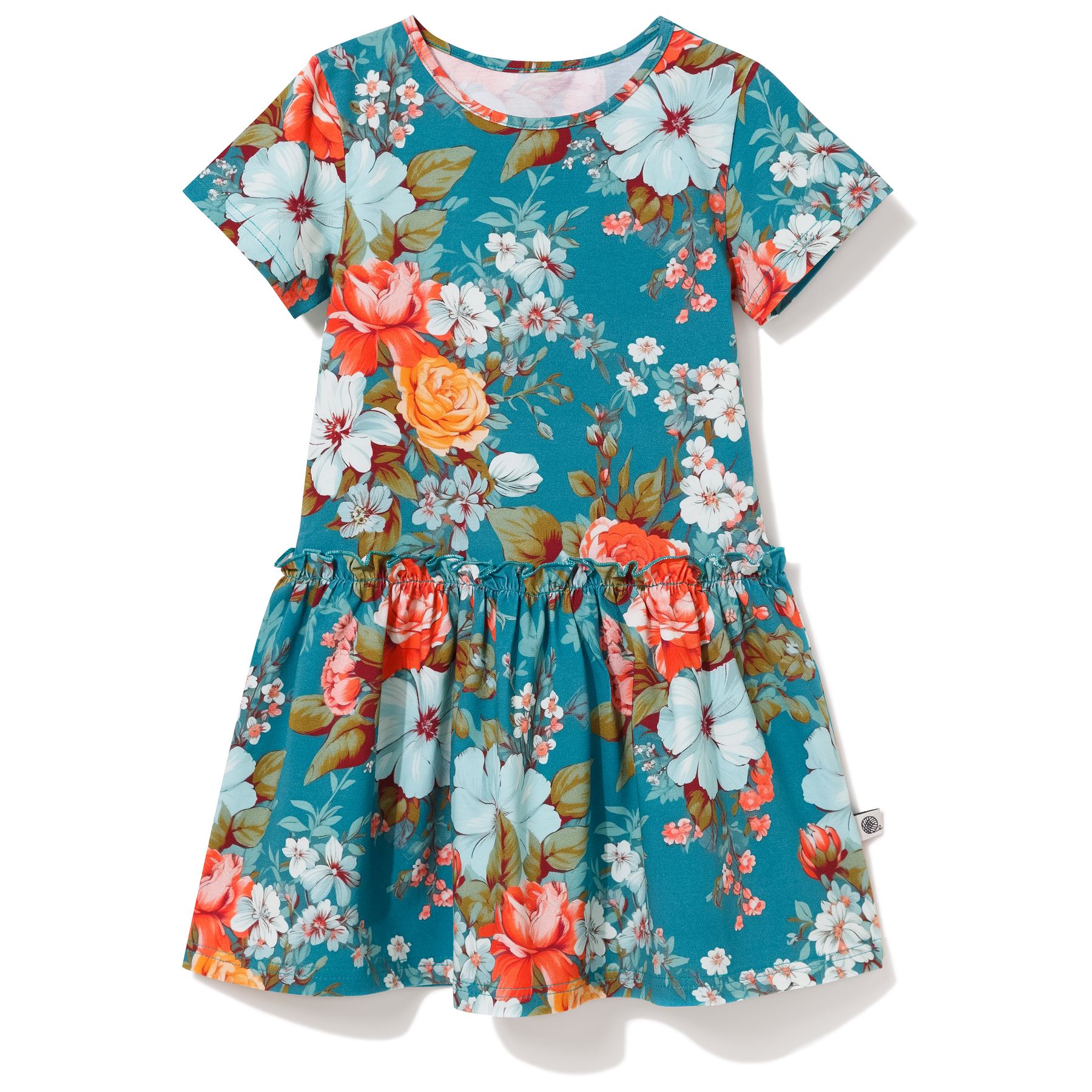 Kolorowa sukienka dziewczęca. Uszyta w Polsce, z najwyższej jakości bawełny, jest niezwykle wygodna, przyjemna w dotyku, elastyczna i przewiewna, co z pewnością zostanie docenione w ciepłe, słoneczne dni.