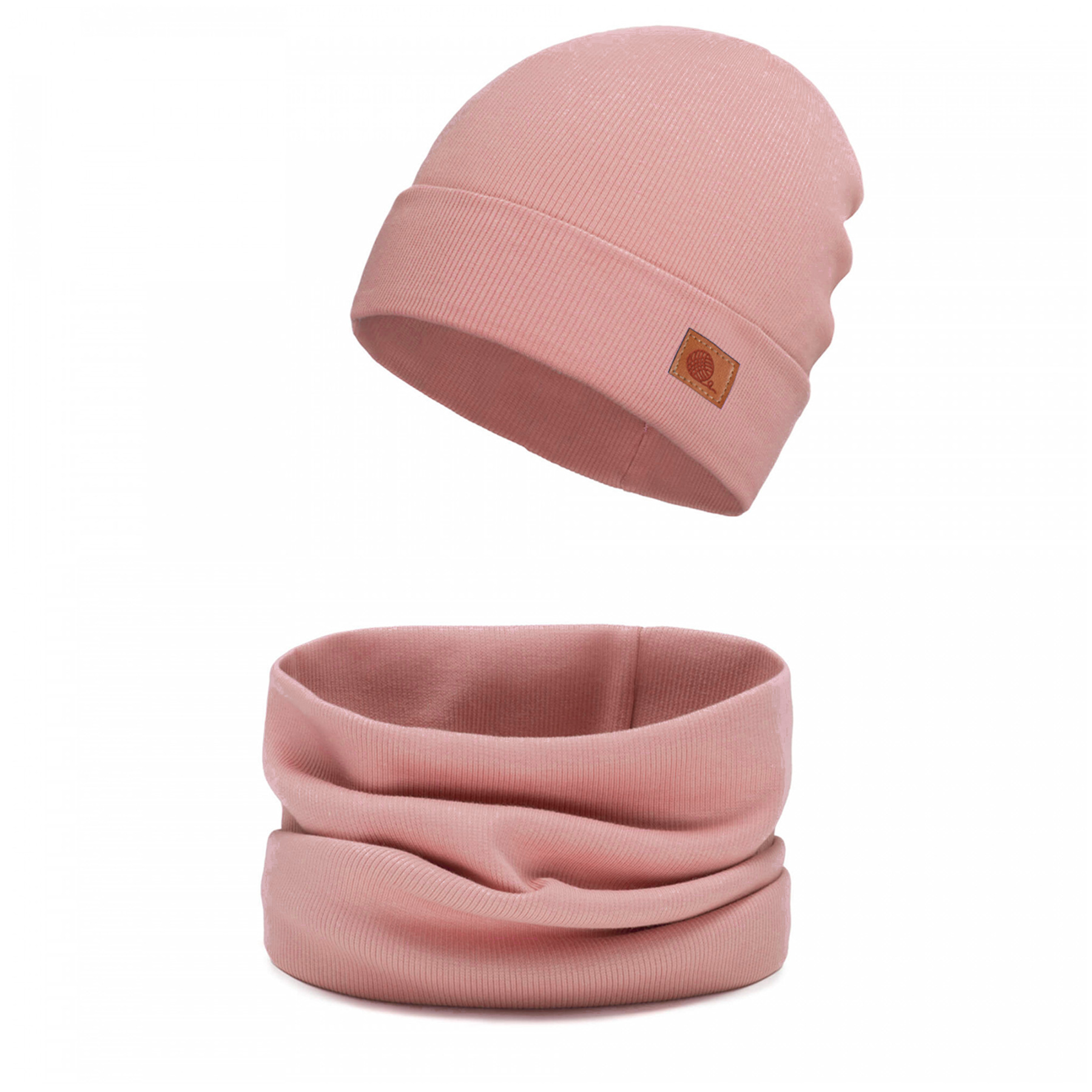 Komplet jest dwuwarstwowy – zarówno czapka jak i komin zostały uszyte z podwójnej warstwy dzianiny, dzięki czemu idealnie sprawdzą się podczas przejściowej pogody. Materiał prążkowany o luźnym splocie – zapewnia większą swobodę noszenia i ogranicza ściąganie się czapki, nawet podczas energicznej zabawy.