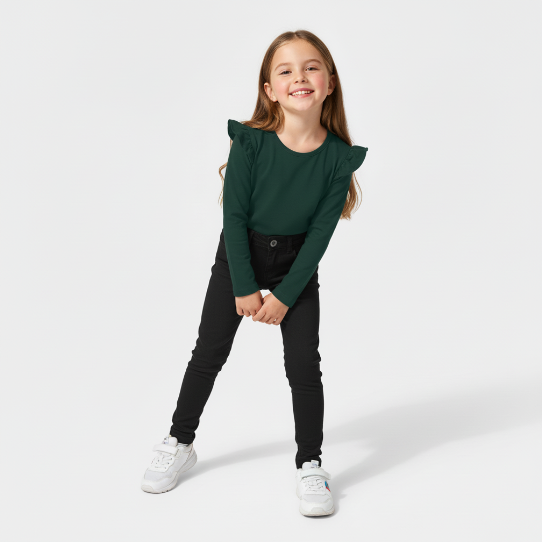 Delikatna, dziewczęca bluzka z długim rękawem. Uszyta w Polsce, z wysokiej jakości bawełny, jest bardzo wygodna, elastyczna i przewiewna, co zostanie docenione w codziennym użytkowaniu. Bluzka ma prosty fason z okrągłym dekoltem. Jej ramiona zostały ozdobione delikatnymi falbankami, które sprawiają, że ubranie prezentuje się jeszcze bardziej stylowo i elegancko. Ta z pozoru prosta bluzka jest bardzo gustowna i ciekawa. Jej subtelny, styl wpisuje się doskonale nie tylko w stylizacje codzienne, ale też te bardziej odświętne. W zestawieniu ze spódnicą będzie wyglądała oszałamiająco i sprawdzi się idealnie na urodzinowym przyjęciu czy innej rodzinnej uroczystości.