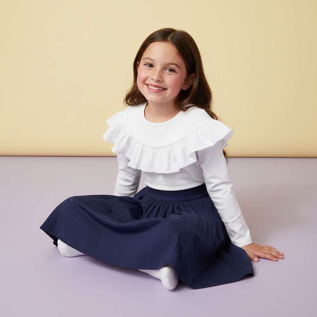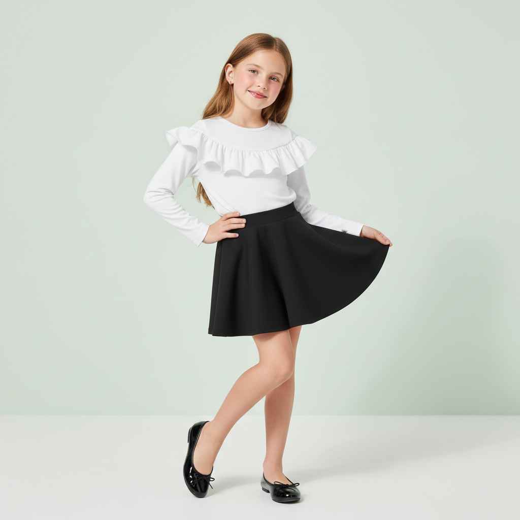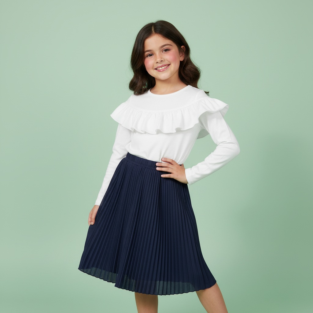 Biała bluzka z długim rękawem. Uszyta w Polsce, z najwyższej jakości bawełny, jest miękka, elastyczna, bardzo wygodna, a przy tym niezwykle efektowna. Wszystko za sprawą dużej, zaokrąglonej falbanki umieszczonej tuż pod dekoltem. To ona sprawia, że bluza prezentuje się tak elegancko. Jest to wspaniała propozycja zarówno do stylizacji casualowych, jak i eleganckich. Można połączyć ją z kolorowymi legginsami lub piękną, tiulową spódniczką.