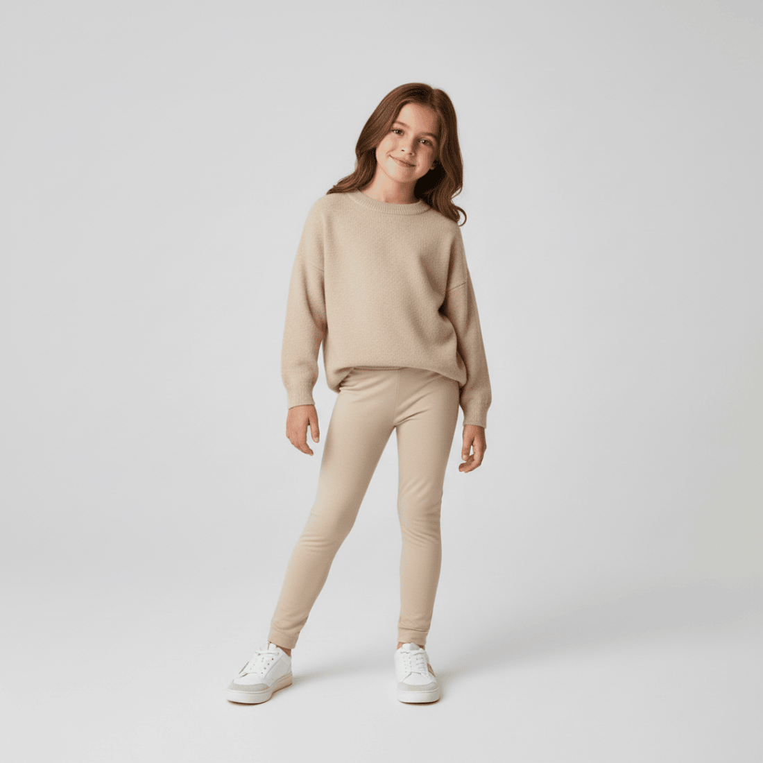 Jednolite, długie legginsy dziewczęce w kolorze ecru. Uszyte w Polsce, z najwyższej jakości bawełny, są przyjemne w dotyku i bardzo wygodne. Legginsy mają elastyczną gumkę w pasie, która doskonale je utrzymuje i nie uciska. Ich prosty fason i elastyczny materiał sprawiają, że legginsy idealnie dopasowują się do dziewczęcej sylwetki, zapewniając jej pełną swobodę ruchów i doskonałe samopoczucie przez cały dzień. Jednolite legginsy dają mnóstwo możliwości stylizacyjnych, dlatego powinny znaleźć się garderobie każdej dziewczynki.