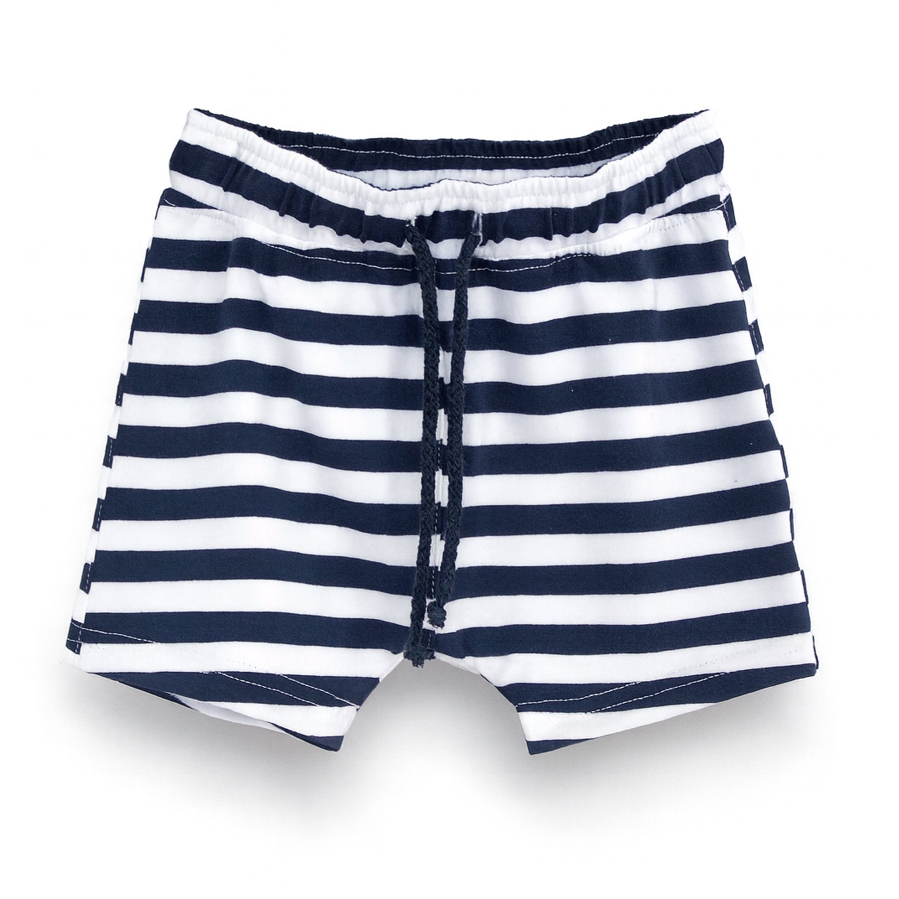 Wygodne i stylowe niemowlęce spodenki wykonane z miękkiej, wysokiej jakości bawełny to doskonały wybór na ciepłe dni. Klasyczny wzór w biało-granatowe paski nadaje im uroku i ponadczasowego charakteru, pasując zarówno do codziennych stylizacji, jak i na specjalne okazje. Elastyczny pas zapewnia komfort noszenia i łatwe zakładanie, nie uciskając delikatnego brzuszka maluszka. Spodenki są przewiewne, lekkie i przyjazne dla wrażliwej skóry dziecka, co czyni je idealnym elementem letniej garderoby każdego niemowlaka.