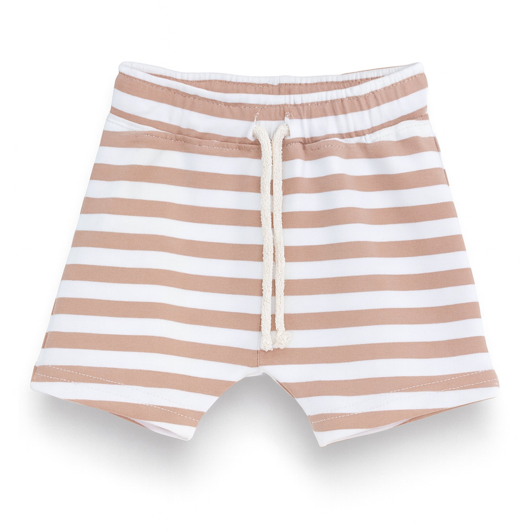Wygodne i stylowe niemowlęce spodenki wykonane z miękkiej, wysokiej jakości bawełny to doskonały wybór na ciepłe dni. Klasyczny wzór w biało-beżowe paski nadaje im uroku i ponadczasowego charakteru, pasując zarówno do codziennych stylizacji, jak i na specjalne okazje. Elastyczny pas zapewnia komfort noszenia i łatwe zakładanie, nie uciskając delikatnego brzuszka maluszka. Spodenki są przewiewne, lekkie i przyjazne dla wrażliwej skóry dziecka, co czyni je idealnym elementem letniej garderoby każdego niemowlaka.