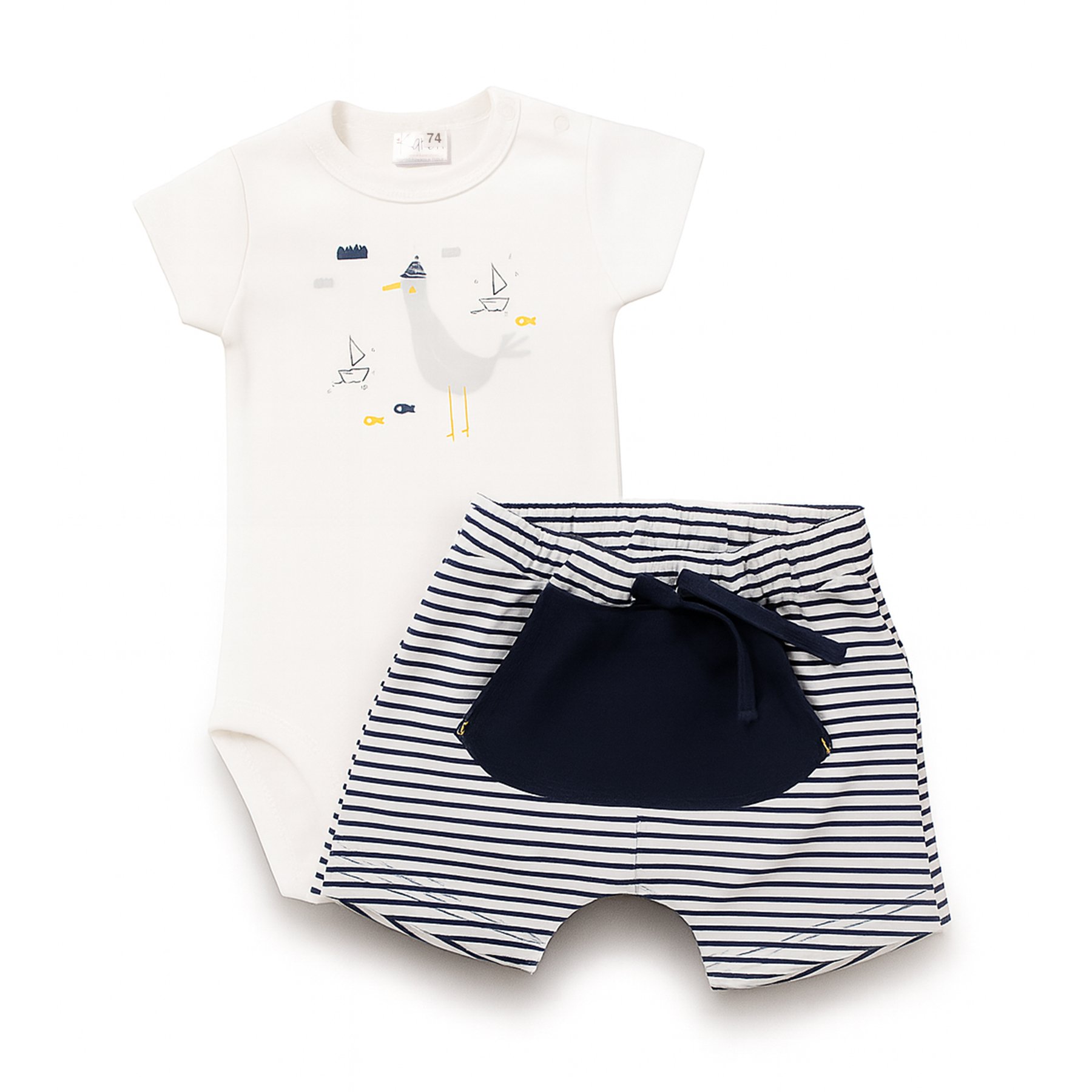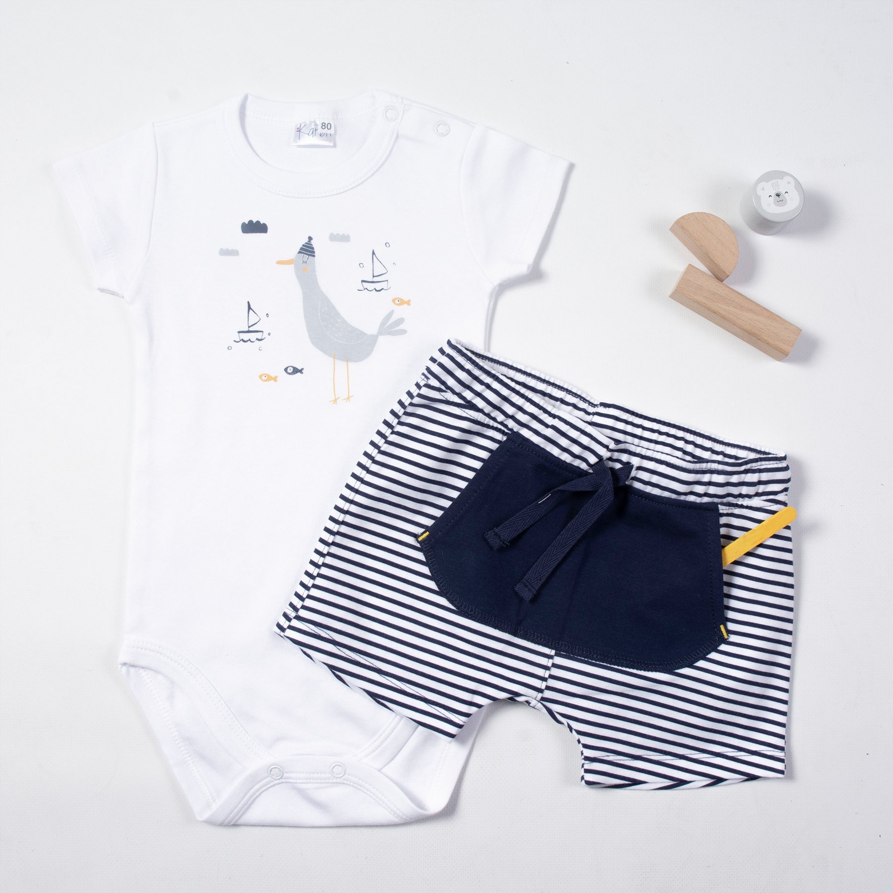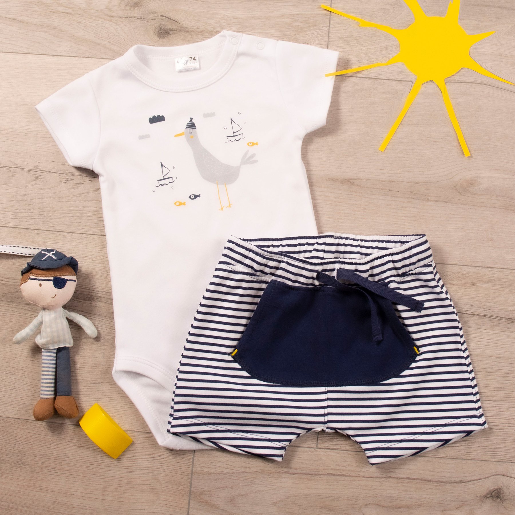 Bawełniany komplet niemowlęcy w biało-granatowe paski to stylowe i wygodne rozwiązanie dla każdego maluszka. Zestaw składa się z miękkiego body oraz dopasowanych spodenek, które razem tworzą uroczy i funkcjonalny strój. Naturalna, delikatna dla skóry tkanina zapewnia komfort przez cały dzień, a staranne wykonanie sprawia, że ubranko świetnie sprawdzi się zarówno podczas codziennych zabaw, jak i rodzinnych spotkań. Klasyczne paski dodają całości uroku i ponadczasowego charakteru.