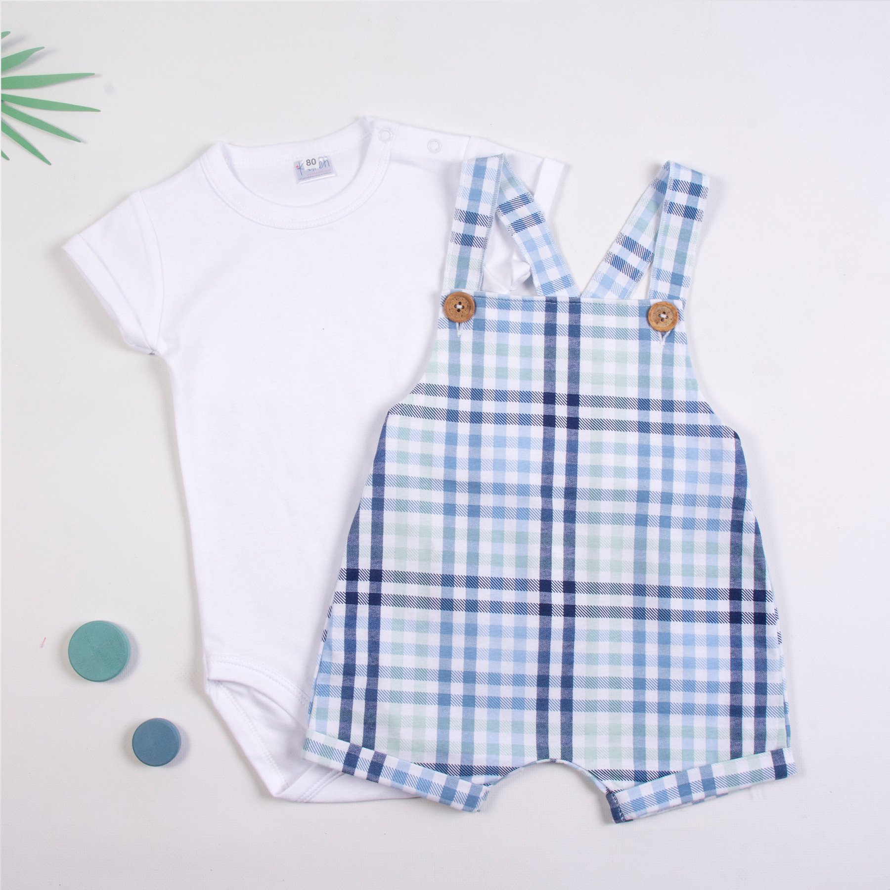 Komplet niemowlęcy składający się z bawełnianego body i niebieskich ogrodniczek w kratę to połączenie wygody, stylu i funkcjonalności. Miękki, oddychający materiał delikatnie otula skórę dziecka, zapewniając mu pełen komfort przez cały dzień. Body w białym kolorze harmonijnie współgra z efektownymi ogrodniczkami, tworząc modną i zarazem praktyczną stylizację. Kraciasty wzór dodaje uroku, a klasyczne wykończenie sprawia, że zestaw świetnie sprawdzi się zarówno na co dzień, jak i przy wyjątkowych okazjach. To idealny wybór dla rodziców, którzy cenią estetykę i wygodę w dziecięcej garderobie.