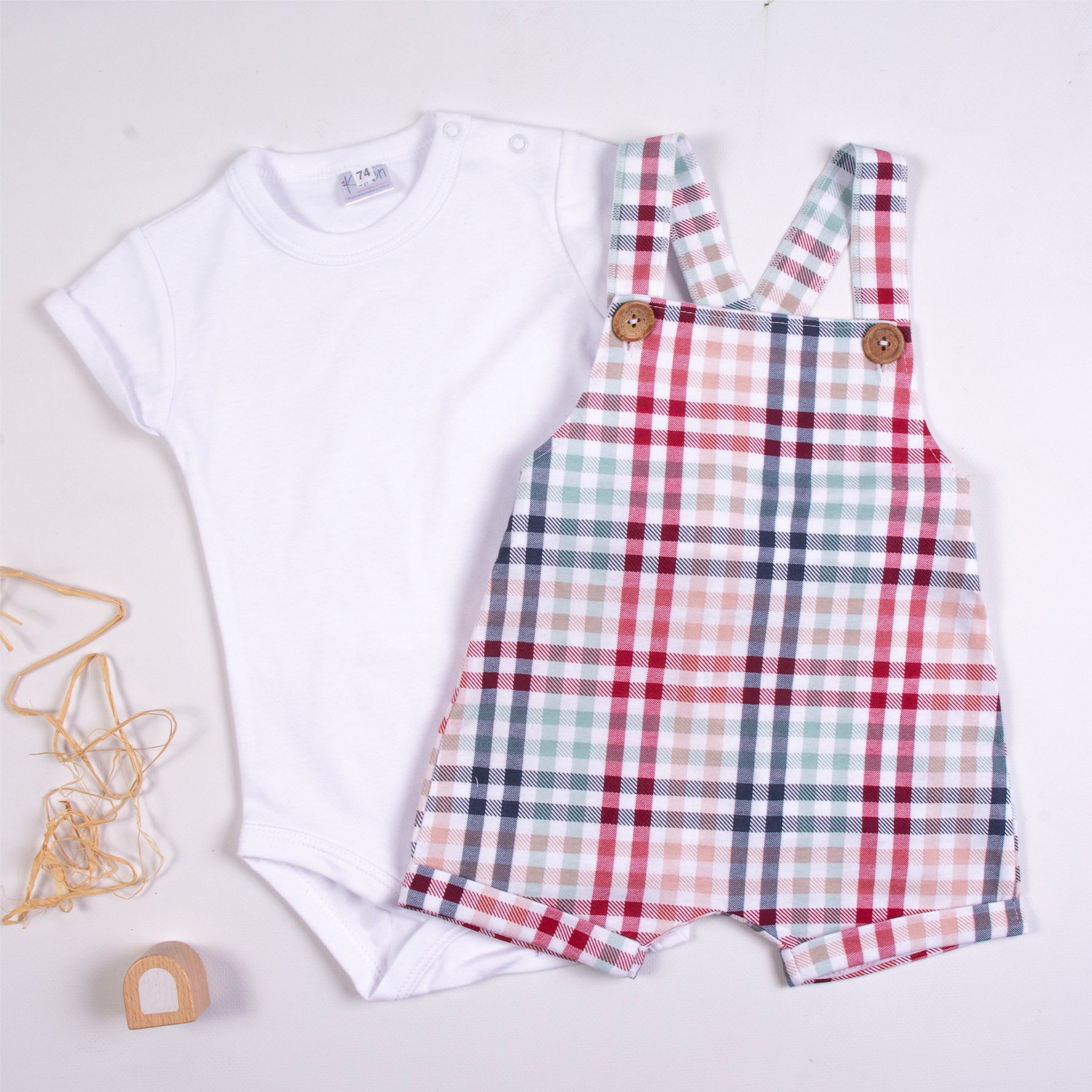Komplet niemowlęcy składający się z bawełnianego body i czerwonych ogrodniczek w kratę to połączenie wygody, stylu i funkcjonalności. Miękki, oddychający materiał delikatnie otula skórę dziecka, zapewniając mu pełen komfort przez cały dzień. Body w białym kolorze harmonijnie współgra z efektownymi ogrodniczkami, tworząc modną i zarazem praktyczną stylizację. Kraciasty wzór dodaje uroku, a klasyczne wykończenie sprawia, że zestaw świetnie sprawdzi się zarówno na co dzień, jak i przy wyjątkowych okazjach. To idealny wybór dla rodziców, którzy cenią estetykę i wygodę w dziecięcej garderobie.