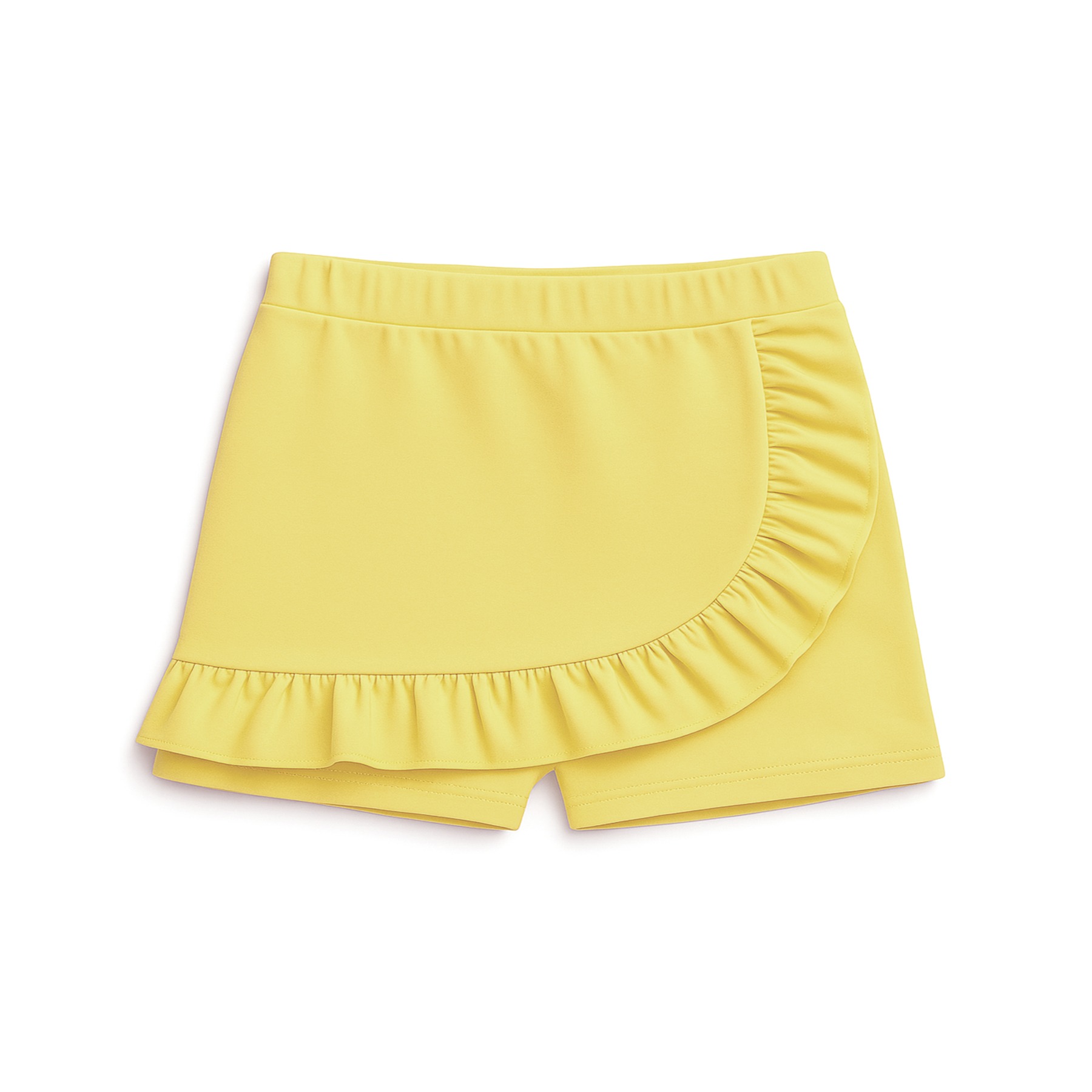 Luźne, wygodne spodenki mają elastycznie wykończoną gumkę w pasie i falbankę, która nadaje spodenkom uroku spódniczki. Szerokie nogawki zapewniają pełną swobodę noszenia i nie uwierają podczas upalnych dni. Żółte spodenki pięknie wpisują się w dziewczęcą garderobę, sprawdzają się idealnie w codziennych, casualowych stylizacjach, ale też w bardziej efektownych i eleganckich kreacjach. Wystarczy dopasować do nich gustowną koszulkę Wings, do tego sandałki i gotowe.