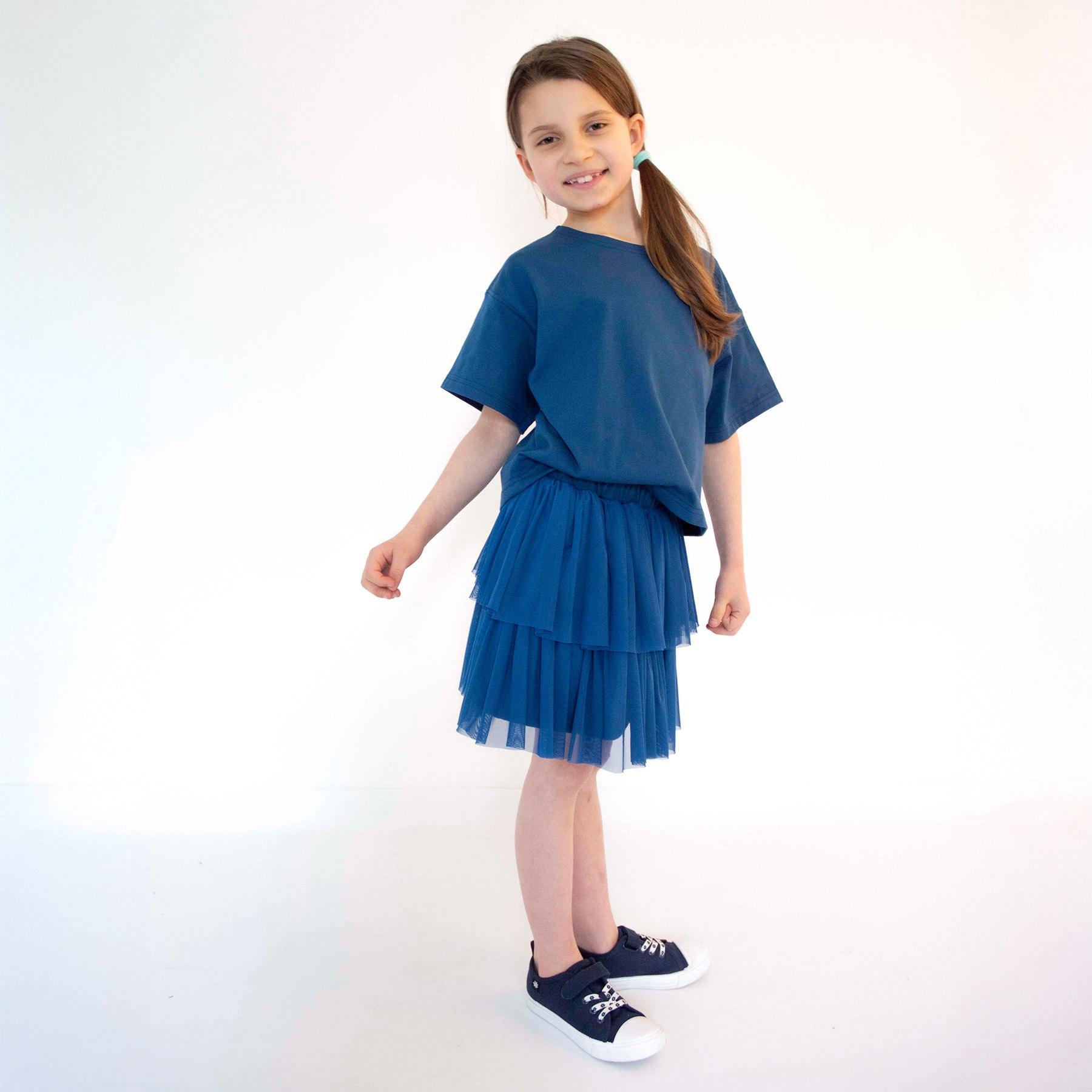 Uroczy komplet niemowlęcy to idealny wybór na codzienne chwile pełne zabawy. Zestaw składa się z krótkiego, miękkiego t-shirta oraz spódnicy z falbankami, wykonanej z miękkiego materiału . Elastyczna talia zapewniają wygodne dopasowanie i swobodę ruchów. Całość tworzy stylową, a jednocześnie wygodną stylizację dla małej dziewczynki, idealną na spacer, rodzinne spotkanie czy sesję zdjęciową.
