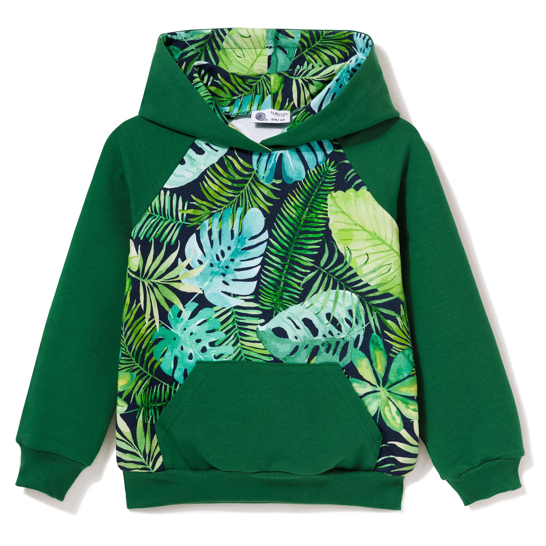 Bluza uszyta w Polsce, z wysokiej jakości bawełny. Jest przyjemna w dotyku, przewiewna i bardzo wygodna, co na pewno zostanie docenione podczas kilkugodzinnych zabaw. Bluza ma luźny fason z głębokim kapturem, dużą kieszeń z przodu i wykończenia z praktycznych ściągaczy. Zielony kolor został uzupełniony o wzór monstery, który jest wykorzystany nie tylko na korpusie, ale także wewnątrz głębokiego kaptura, co nadaje bluzie ciekawego wyrazu. W ofercie dostępne są spodnie dresowe z takim samym motywem. Kupując je razem z bluzą, można stworzyć wygodny zestaw dresowy idealny na weekendowe wycieczki. .
