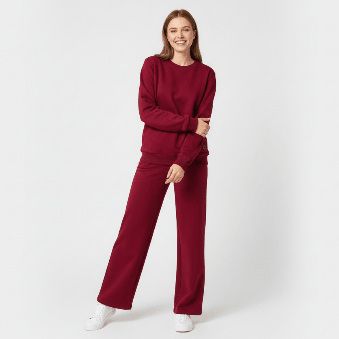 Odkryj komfort i styl w kobiecym wydaniu - damski dres bawełniany w przepięknym, bordowym kolorze to idealna propozycja do domu, na spacer czy na niezobowiązujące spotkanie ze znajomymi.
