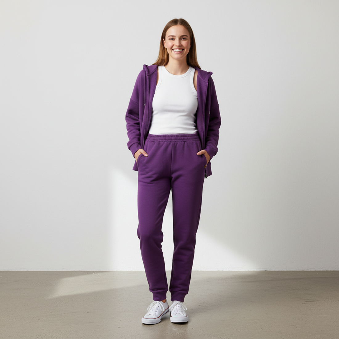 Spodnie dresowe w odcieniu śliwkowym to subtelny, kobiecy akcent, który odmieni każdą garderobę.