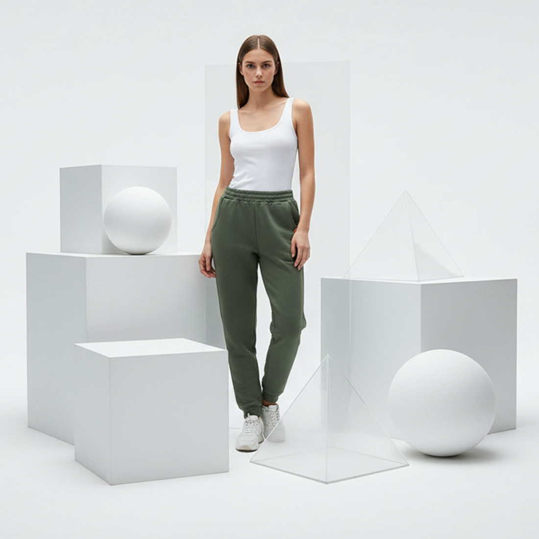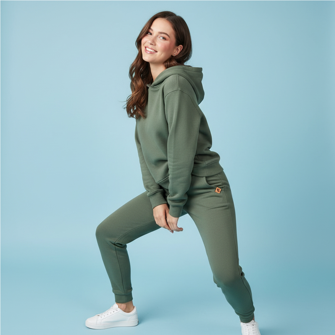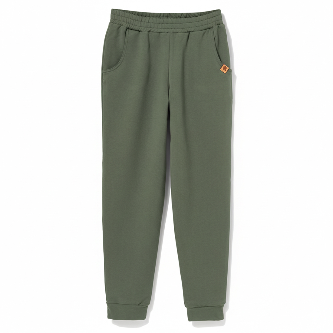 Oliwkowy odcień pięknie współgra z odcieniami ziemi, beżami, kremami czy brązem, tworząc harmonijne stylizacje. To idealny wybór dla mam, które szukają komfortowych, stylowych spodni do łączenia z bluzami czy swetrami.