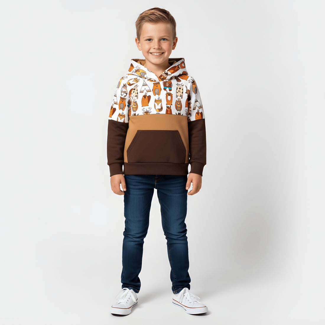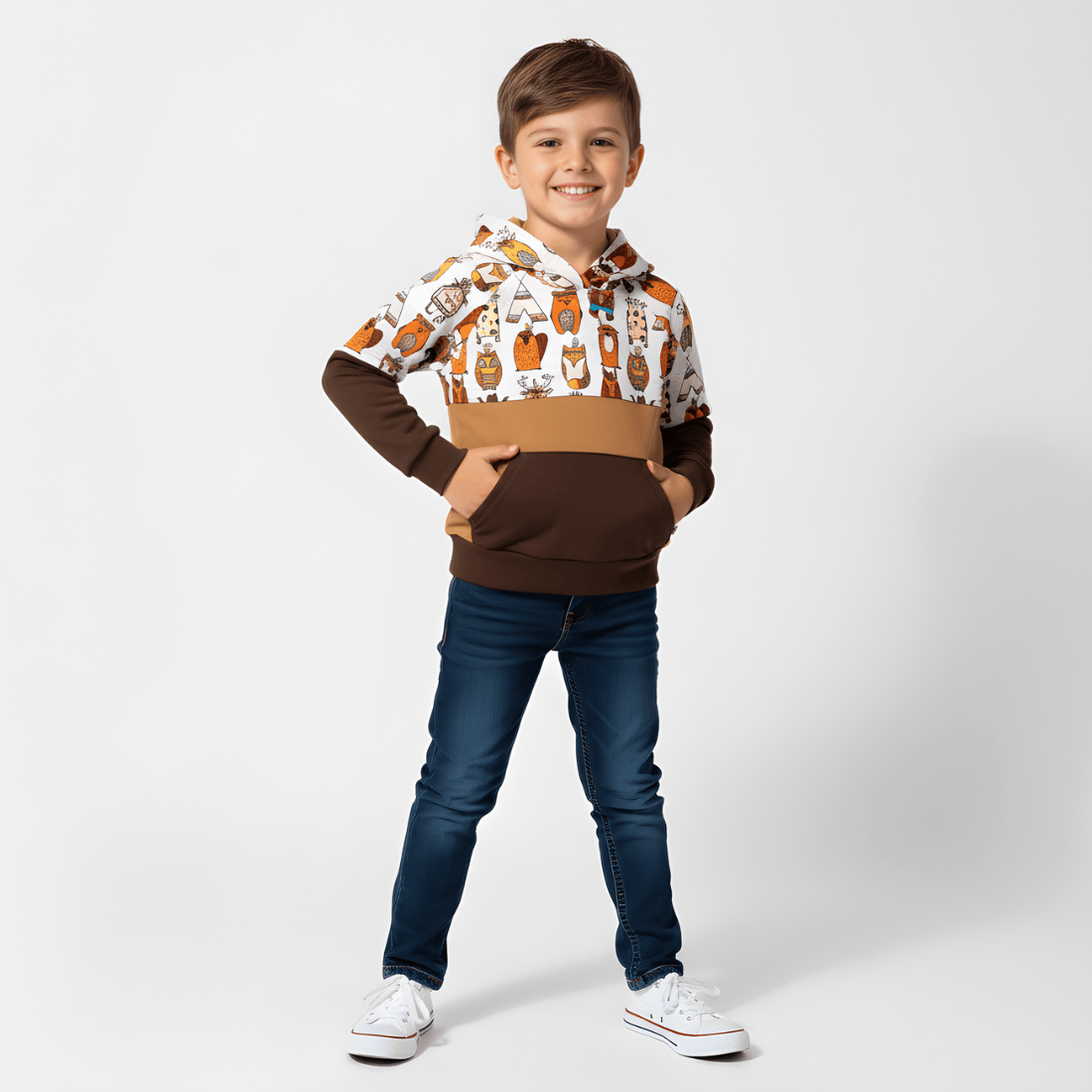 Bluza jest wygodna, nie krępuje ruchów i świetnie sprawdza się w codziennych zabawach. Kaptur chroni przed wiatrem, a duża kieszeń z przodu pomieści skarby każdego małego poszukiwacza przygód.