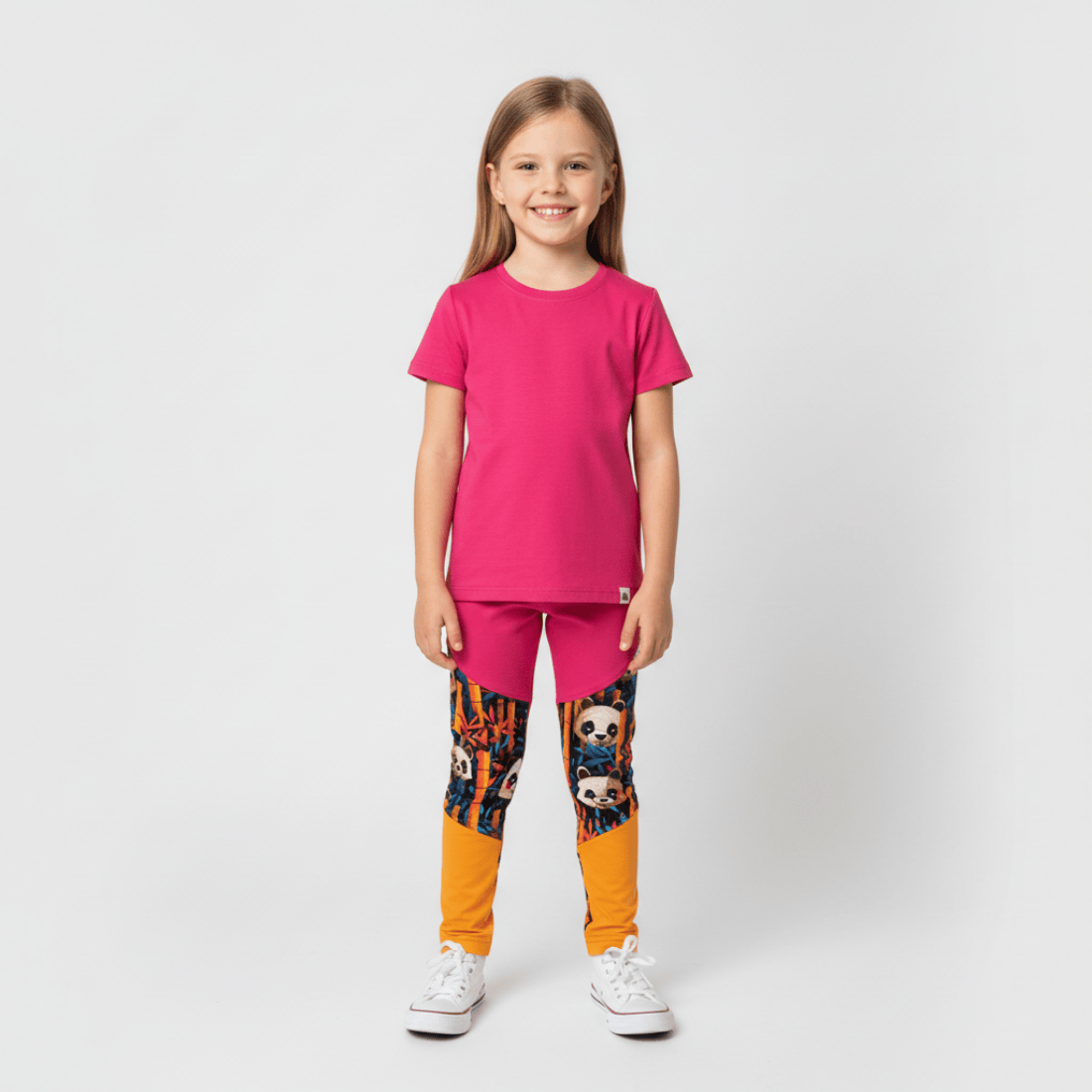 Słoneczne i wesołe – pomarańczowe legginsy z motywem pand to idealny wybór na każdy dzień.