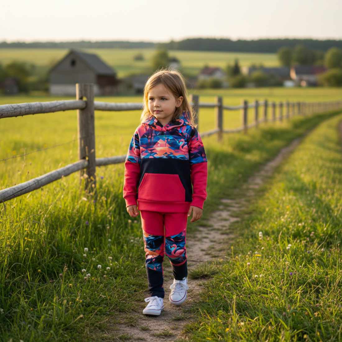 Legginsy doskonale pasują do bluzy z tym samym motywem – razem tworzą uroczy, kolorowy zestaw.