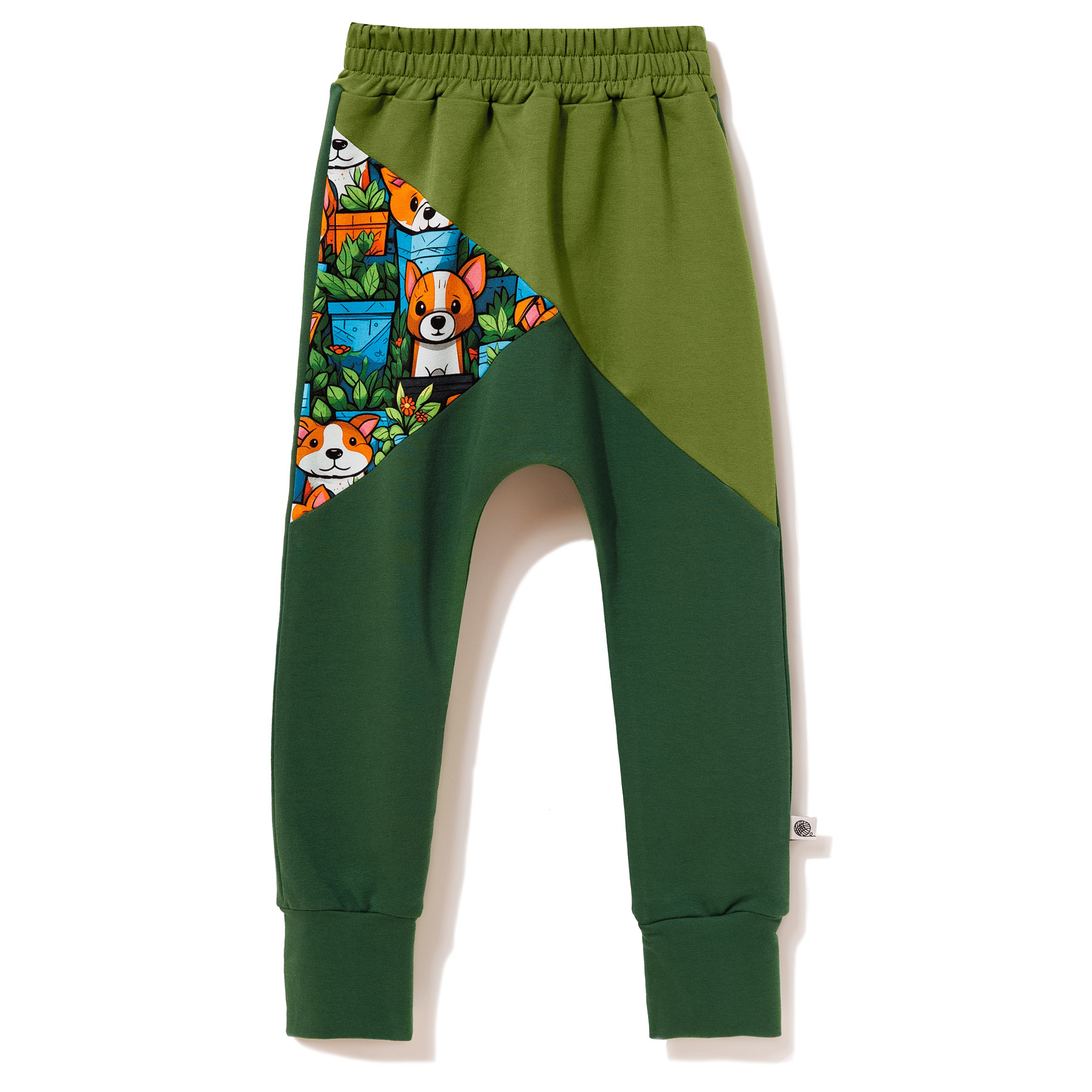 Zielone spodnie dresowe z motywem piesków to propozycja, obok której żaden mały fan zwierząt nie przejdzie obojętnie.