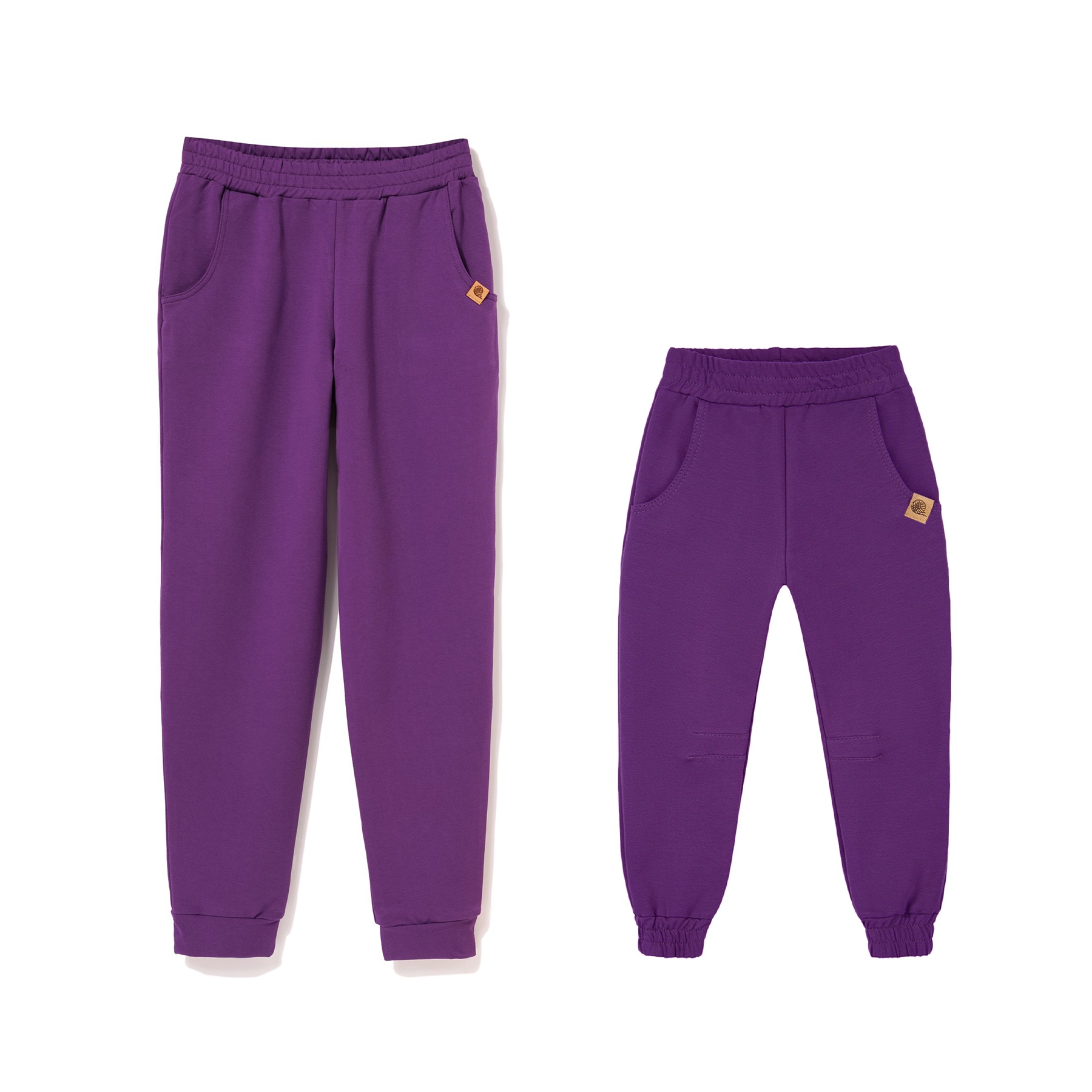 Śliwkowe spodnie Igo w zestawie dla mamy i córki to połączenie wygody i wyjątkowego, kobiecego koloru. Wyrazisty odcień śliwki dodaje stylizacjom uroku, a elastyczna dzianina bawełniana z dodatkiem elastanu gwarantuje pełen komfort ruchów.