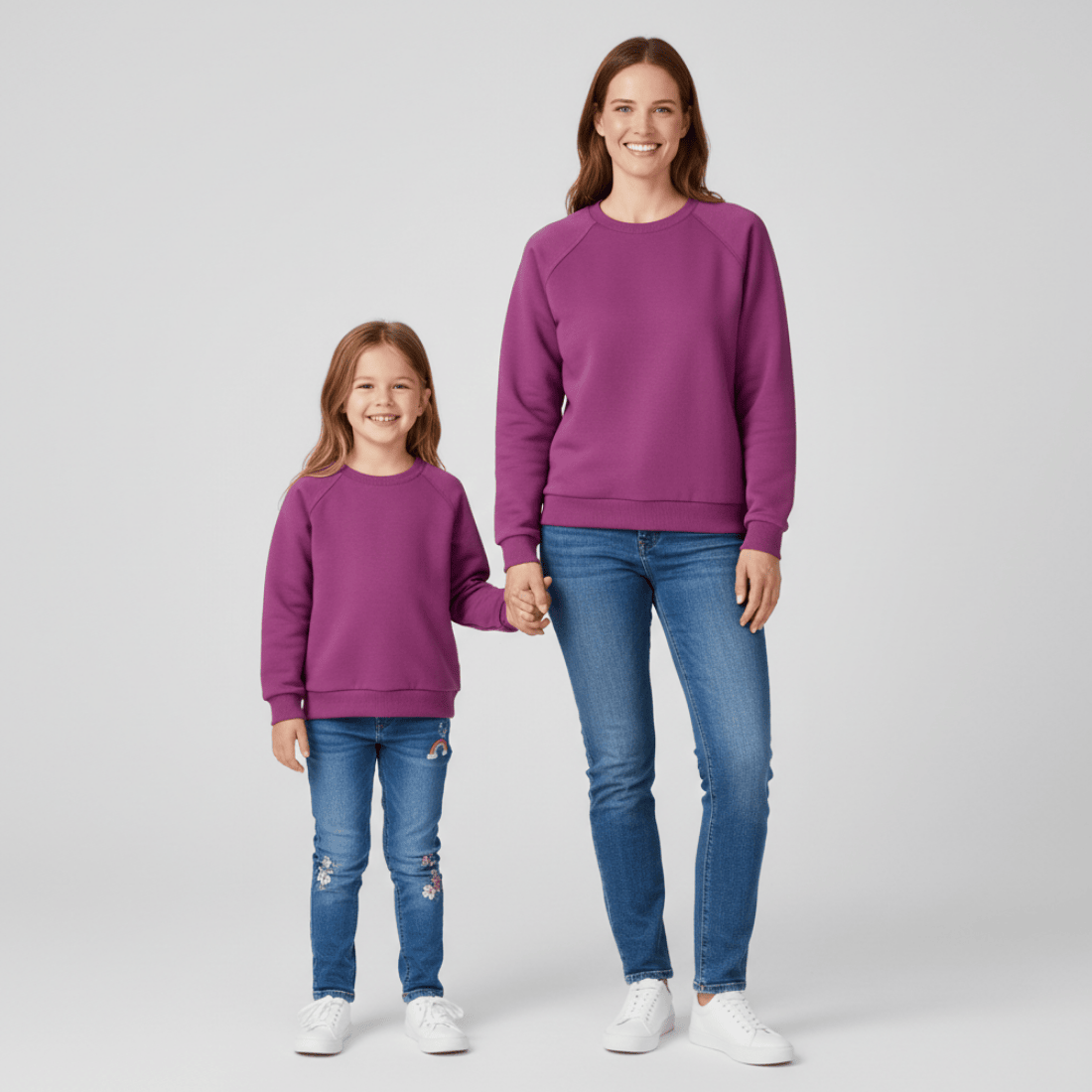 Śliwkowe bluzy basic dla mamy i córki to duet, który łączy wygodę, prostotę i piękny, kobiecy kolor. Uszyte z miękkiej bawełny z dodatkiem elastanu są przyjemne w dotyku, elastyczne i bardzo komfortowe w noszeniu – idealne na każdy dzień, w domu i poza nim.