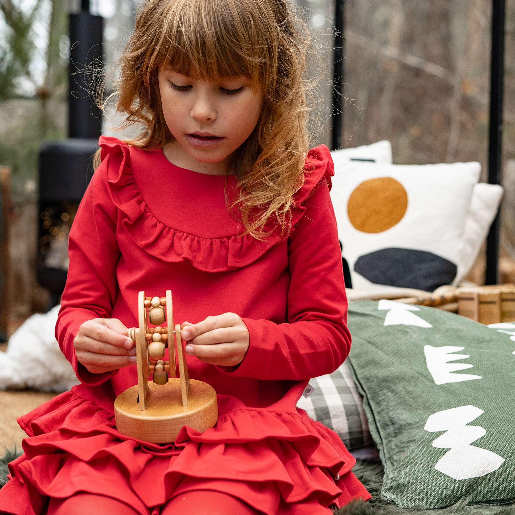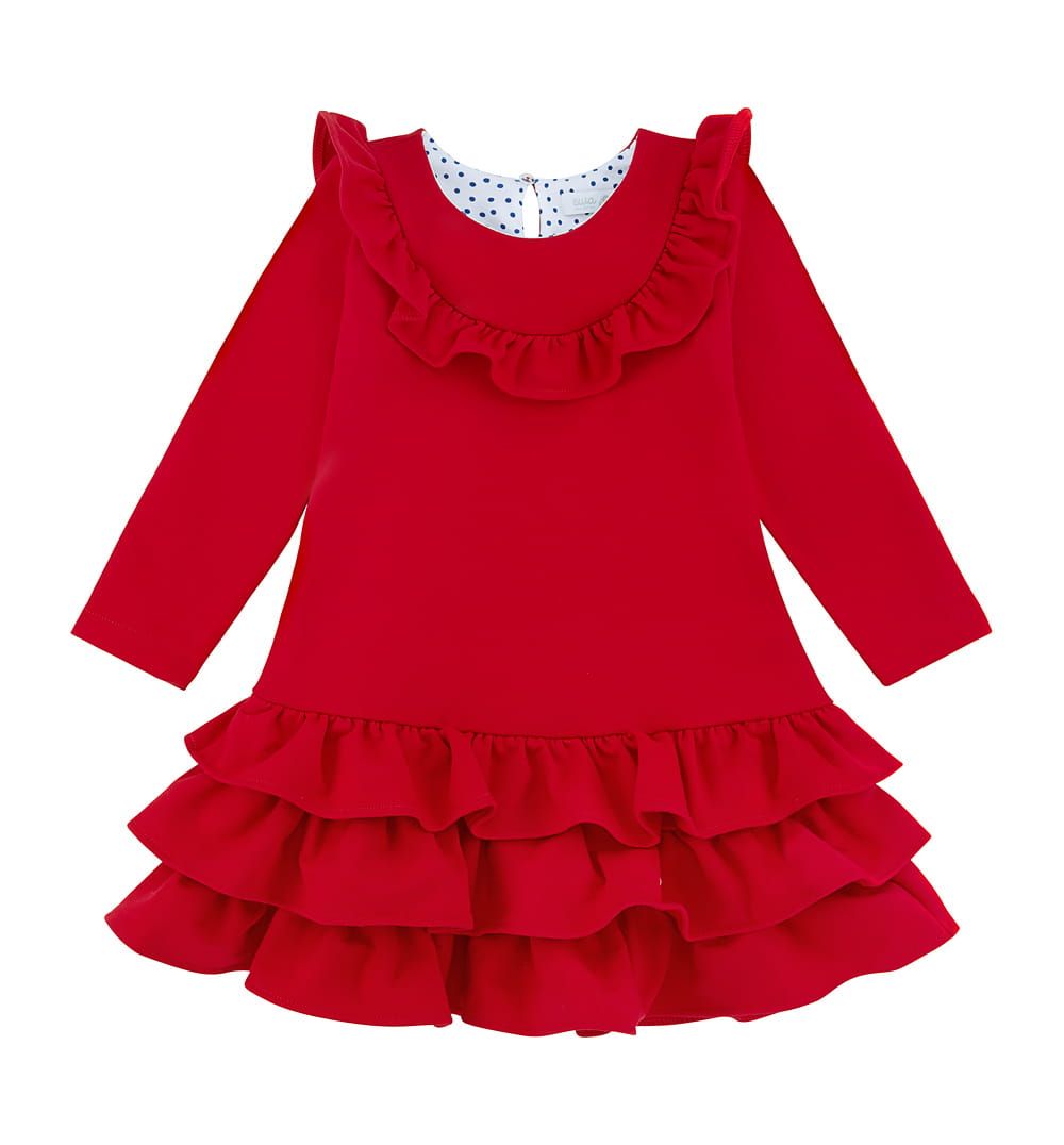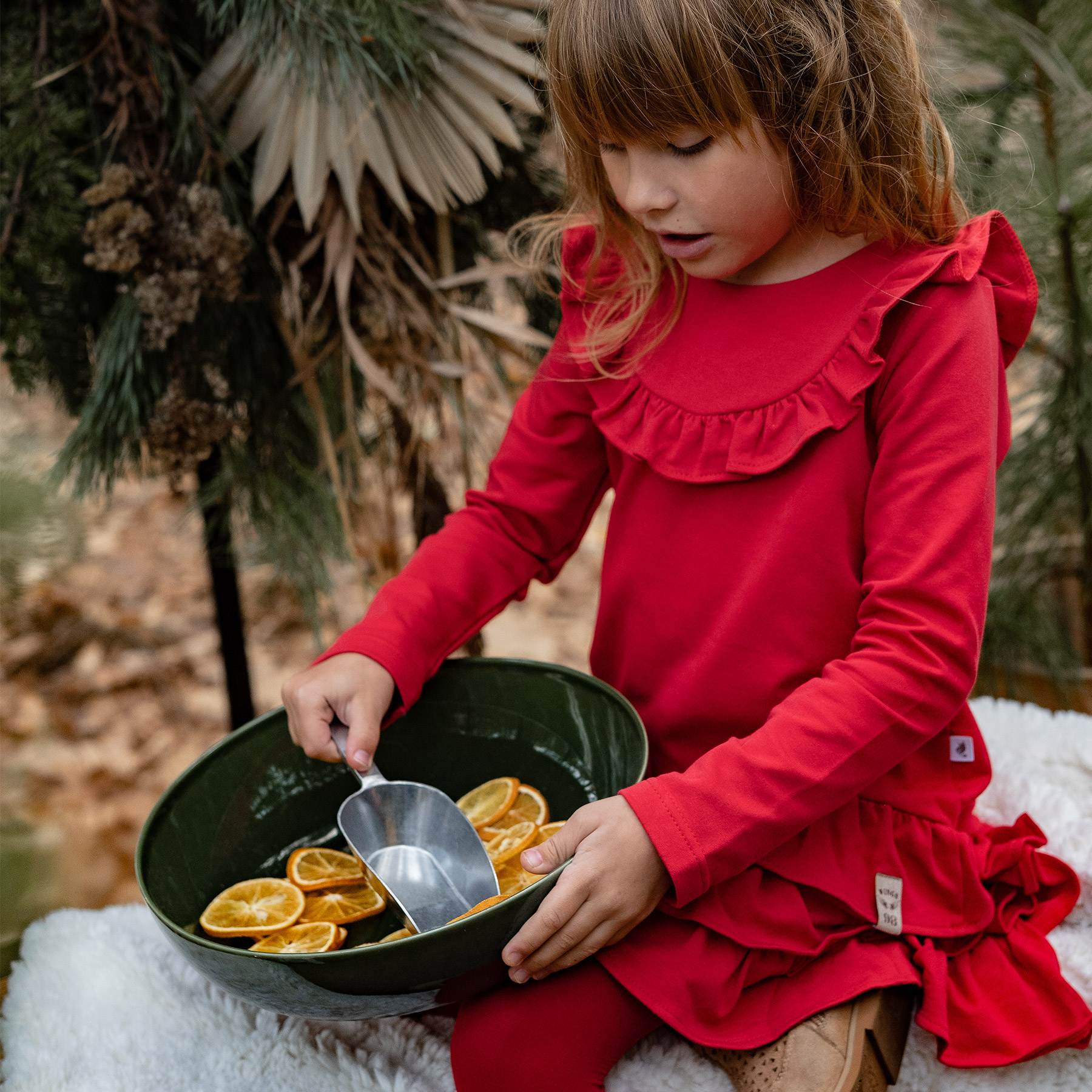 Czerwona sukienka dziewczęca z falbankami to idealna propozycja na święta, ale także na wiele innych, eleganckich okazji. Uszyta w Polsce z mięciutkiej, elastycznej bawełny, jest niezwykle wygodna i przyjemna dla skóry — to model, w którym dziecko będzie czuło się swobodnie przez cały dzień, niezależnie od tego, czy czeka je uroczystość, występ czy rodzinne spotkanie.