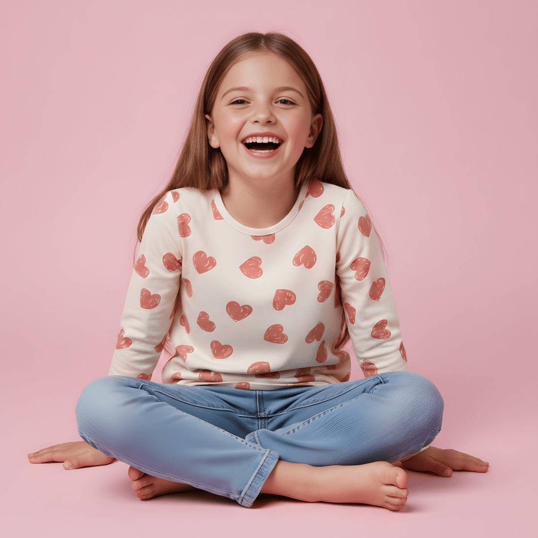 Śmietankowa bluzka dziewczęca w serduszka to ciekawa baza dziecięcej garderoby w wyjątkowo uroczym wydaniu. Uszyta z miękkiej, naturalnej bawełny z dodatkiem elastanu, jest przyjemna w dotyku, elastyczna i bardzo wygodna w codziennym noszeniu.