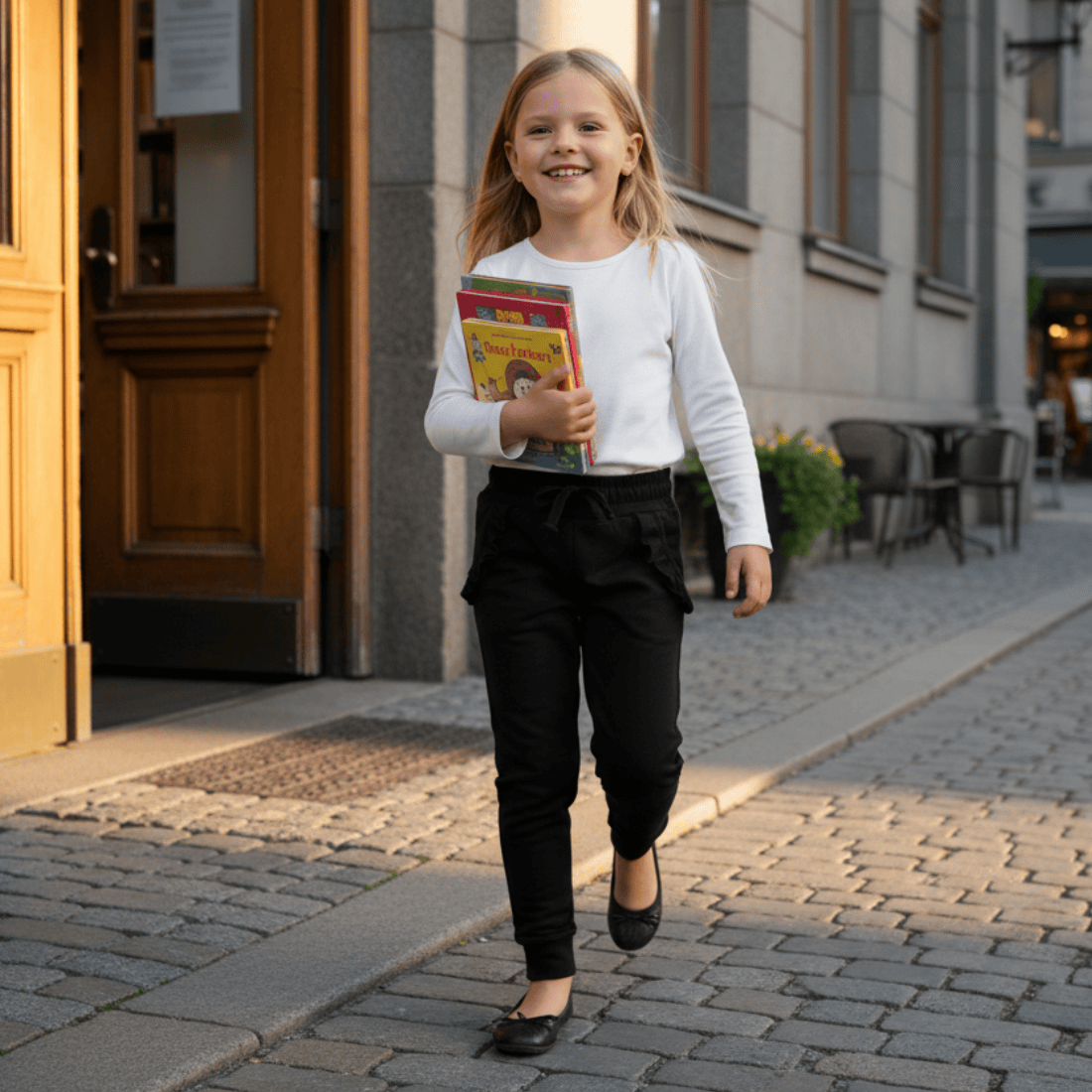 Czarne spodnie dziewczęce to uniwersalny i bardzo praktyczny element garderoby, który łączy wygodę codziennego noszenia z modnym, nowoczesnym fasonem. Uszyte z miękkiej dzianiny bawełnianej z dodatkiem elastanu, zapewniają komfort i elastyczne dopasowanie, dzięki czemu idealnie nadają się na co dzień — do szkoły, przedszkola czy na rodzinne spacery.